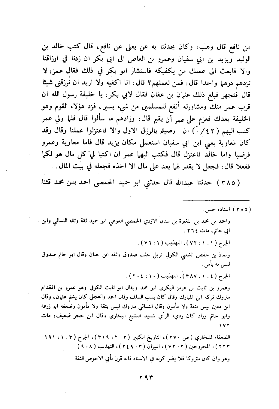 385 - حَدَّثَنَا عَبْدُ اللَّهِ قَالَ: حَدَّثَنِي أَبُو حُمَيْدٍ الْحِمْصِيُّ أَحْمَدُ بْنُ مُحَمَّدٍ قثنا مُعَاوِيَةُ بْنُ حَفْصٍ قَالَ: نا أَبُو الْأَحْوَصِ، وَعَمْرُو بْنُ ثَابِتٍ، قَالَا: سَمِعْنَا أَبَا إِسْحَاقَ §يَقُولُ: بُغْضُ أَبِي بَكْرٍ وَعُمَرَ مِنَ الْكَبَائِرِ.