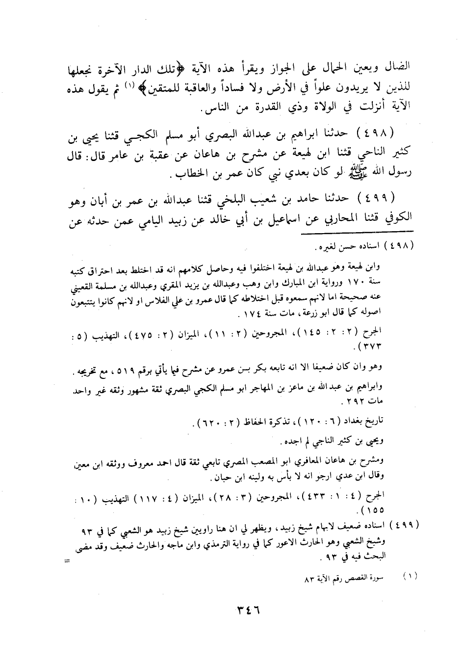 498 - حَدَّثَنَا إِبْرَاهِيمُ بْنُ عَبْدِ اللَّهِ الْبَصْرِيُّ أَبُو مُسْلِمٍ الْكَجِّيُّ قثنا يَحْيَى بْنُ كَثِيرٍ النَّاحِيُّ قثنا ابْنُ لَهِيعَةَ، عَنْ مِشْرَحِ بْنِ هَاعَانَ، عَنْ عُقْبَةَ بْنِ عَامِرٍ قَالَ: قَالَ رَسُولُ اللَّهِ صَلَّى اللهُ عَلَيْهِ وَسَلَّمَ: «§لَوْ كَانَ بَعْدِي نَبِيٌّ كَانَ عُمَرَ بْنَ الْخَطَّابِ» .
