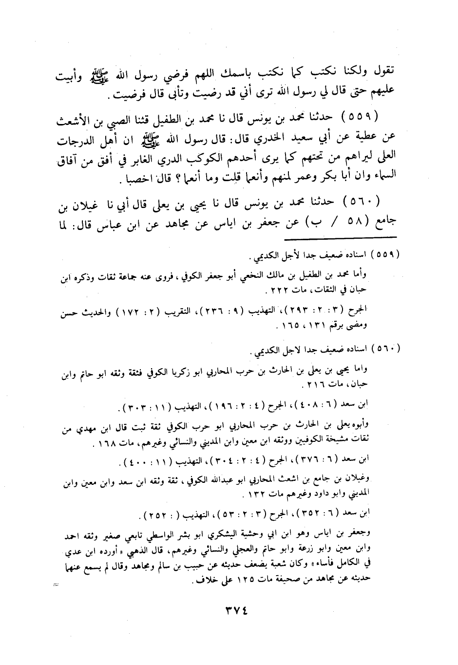 559 - حَدَّثَنَا مُحَمَّدُ بْنُ يُونُسَ قَالَ: نا مُحَمَّدُ بْنُ الطُّفَيْلِ قثنا الصُّبَيُّ بْنُ الْأَشْعَثِ، عَنْ عَطِيَّةَ، عَنْ أَبِي سَعِيدٍ الْخُدْرِيِّ قَالَ: قَالَ رَسُولُ اللَّهِ صَلَّى اللهُ عَلَيْهِ وَسَلَّمَ: «إِنَّ §أَهْلَ الدَّرَجَاتِ الْعُلَى لَيَرَاهُمْ مَنْ تَحْتَهُمْ كَمَا يَرَى أَحَدُهُمُ الْكَوْكَبَ الدُّرِّيَّ الْغَابِرَ فِي أُفُقٍ مِنْ آفَاقِ السَّمَاءِ، وَإِنَّ أَبَا بَكْرٍ وَعُمَرَ لَمِنْهُمْ، وَأَنْعَمَا» . قُلْتُ: وَمَا أَنْعَمَا؟ قَالَ: أَخْصَبَا.