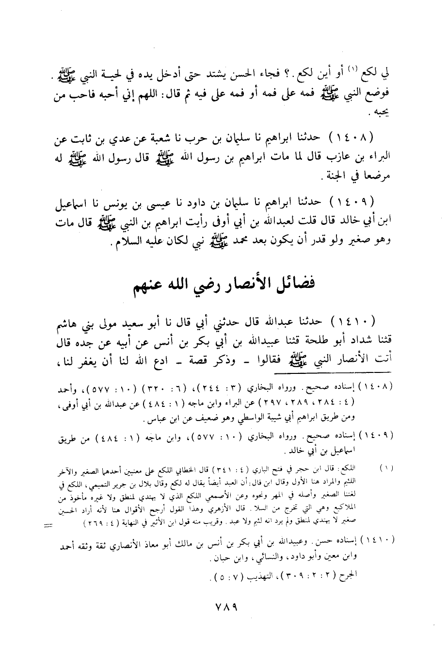 1409 - حَدَّثَنَا إِبْرَاهِيمُ، نا سُلَيْمَانُ بْنُ دَاوُدَ، نا عِيسَى بْنُ يُونُسَ، نا إِسْمَاعِيلُ بْنُ أَبِي خَالِدٍ قَالَ: قُلْتُ لِعَبْدِ اللَّهِ بْنِ أَبِي أَوْفَى: رَأَيْتُ إِبْرَاهِيمَ ابْنَ النَّبِيِّ؟ صَلَّى اللهُ عَلَيْهِ وَسَلَّمَ قَالَ: «§مَاتَ وَهُوَ صَغِيرٌ، وَلَوْ قُدِّرَ أَنْ يَكُونُ بَعْدَ مُحَمَّدٍ صَلَّى اللهُ عَلَيْهِ وَسَلَّمَ نَبِيٌّ، لَكَانَ عَلَيْهِ السَّلَامُ» .