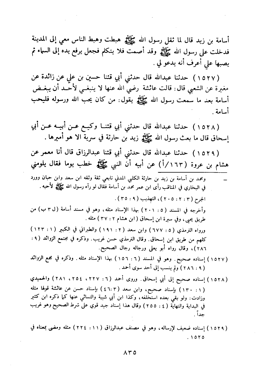 1529 - حَدَّثَنَا عَبْدُ اللَّهِ قَالَ: حَدَّثَنِي أَبِي، قثنا عَبْدُ الرَّزَّاقِ قَالَ: أنا مَعْمَرٌ، عَنْ هِشَامِ بْنِ عُرْوَةَ، عَنْ أَبِيهِ. أَنَّ النَّبِيَّ صَلَّى اللهُ عَلَيْهِ وَسَلَّمَ خَطَبَ يَوْمًا فَقَالَ: «§يَلُومُنِي النَّاسُ فِي تَأْمِيرِي أُسَامَةَ، كَمَا لَامُونِي فِي تَأْمِيرِي أَبَاهُ قَبْلَهُ، وَأَنَّ أَبَاهُ كَانَ أَحَبَّكُمْ إِلَيَّ، وَأَنَّهُ مِنْ أَحَبِّكُمْ إِلَيَّ بَعْدَهُ» .