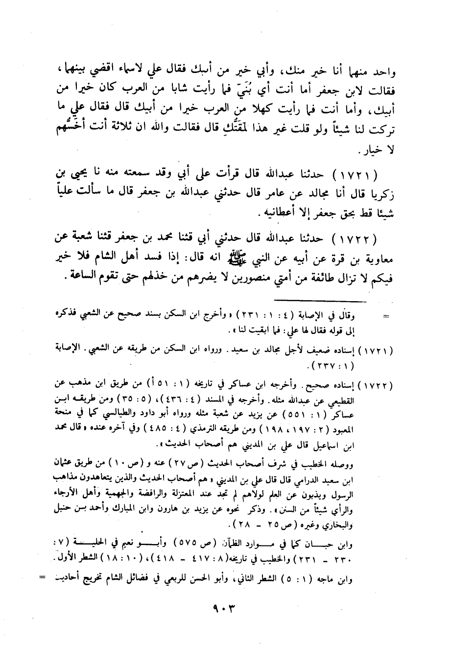 1721 - حَدَّثَنَا عَبْدُ اللَّهِ قَالَ: قَرَأْتُ عَلَى أَبِي، وَقَدْ سَمِعْتُهُ مِنْهُ، نا يَحْيَى بْنُ زَكَرِيَّا قَالَ: أنا مُجَالِدٌ، عَنْ عَامِرٍ قَالَ: حَدَّثَنِي عَبْدُ اللَّهِ بْنُ جَعْفَرٍ قَالَ: «§مَا سَأَلْتُ عَلِيًّا شَيْئًا قَطُّ، بِحَقِّ جَعْفَرٍ إِلَّا أَعْطَانِيهِ» .