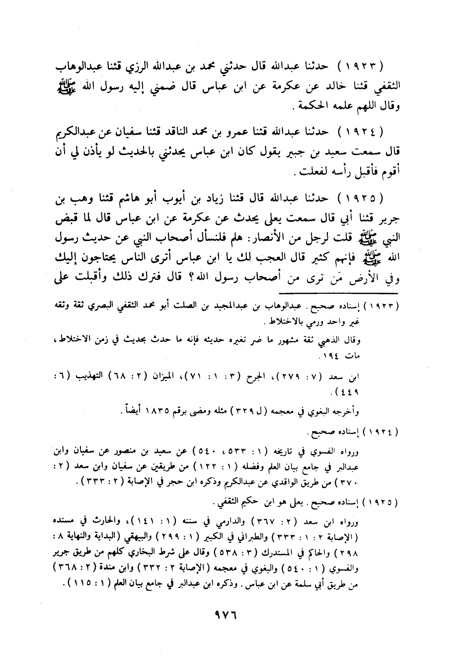 1924 - حَدَّثَنَا عَبْدُ اللَّهِ: قثنا عَمْرُو بْنُ مُحَمَّدٍ النَّاقِدُ قثنا سُفْيَانُ، عَنْ عَبْدِ الْكَرِيمِ قَالَ: سَمِعْتُ سَعِيدَ بْنَ جُبَيْرٍ يَقُولُ: «كَانَ ابْنُ عَبَّاسٍ يُحَدِّثُنِي بِالْحَدِيثِ، §لَوْ يَأْذَنُ لِي أَنْ أَقُومَ فَأُقَبِّلَ رَأْسَهُ لَفَعَلْتُ» .