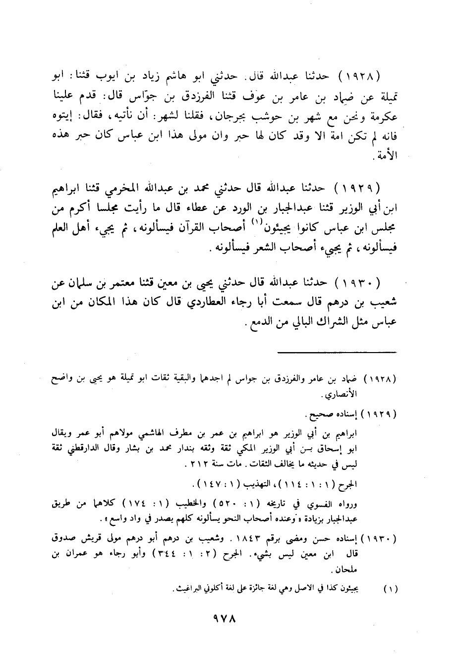 1928 - حَدَّثَنَا عَبْدُ اللَّهِ قَالَ: حَدَّثَنِي أَبُو هَاشِمٍ زِيَادُ بْنُ أَيُّوبَ قثنا أَبُو تُمَيْلَةَ، عَنْ ضِمَادِ بْنِ عَامِرِ بْنِ عَوْفٍ قثنا الْفَرَزْدَقُ بْنُ جَوَّاسٍ قَالَ: قَدِمَ عَلَيْنَا عِكْرِمَةُ وَنَحْنُ مَعَ شَهْرِ بْنِ حَوْشَبٍ بِجُرْجَانَ فَقُلْنَا لِشَهْرٍ أَلَا نَأْتِيهِ؟ فَقَالَ: «إِيتُوهُ فَإِنَّهُ لَمْ تَكُنْ أُمَّةٌ إِلَّا وَقَدْ كَانَ لَهَا حَبْرٌ، وَإِنَّ مَوْلَى هَذَا §ابْنُ عَبَّاسٍ كَانَ حَبْرَ هَذِهِ الْأُمَّةِ» .