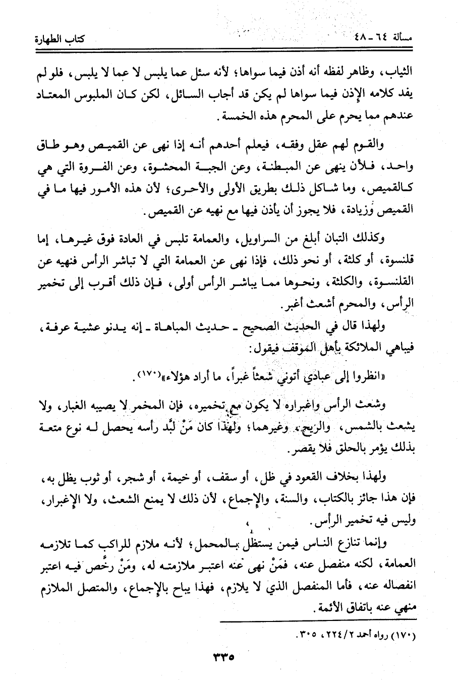 وَالْقَوْمُ لَهُمْ عَقْلٌ وَفِقْهٌ، فَيَعْلَمُ أَحَدُهُمْ أَنَّهُ إذَا نَهَى عَنْ الْقَمِيصِ وَهُوَ طَاقٌ وَاحِدٌ، فَلَأَنْ يَنْهَى عَنْ الْمُبَطَّنَةِ، وَعَنْ الْجُبَّةِ الْمَحْشُوَّةِ، وَعَنْ الْفَرْوَةِ الَّتِي هِيَ كَالْقَمِيصِ، وَمَا شَاكَلَ ذَلِكَ بِطَرِيقِ الْأَوْلَى وَالْأَحْرَى؛ لِأَنَّ هَذِهِ الْأُمُورَ فِيهَا مَا فِي الْقَمِيصِ وَزِيَادَةٌ، فَلَا يَجُوزُ أَنْ يَأْذَنَ فِيهَا مَعَ نَهْيِهِ عَنْ الْقَمِيصِ. وَكَذَلِكَ التُّبَّانُ أَبْلَغُ مِنْ السَّرَاوِيلِ، وَالْعِمَامَةُ تُلْبَسُ فِي الْعَادَةِ فَوْقَ غَيْرِهَا، إمَّا قَلَنْسُوَةً، أَوْ كَلْثَمَةً، أَوْ نَحْوَ ذَلِكَ، فَإِذَا نَهَى عَنْ الْعِمَامَةِ الَّتِي لَا تُبَاشِرُ الرَّأْسَ فَنَهْيُهُ عَنْ الْقَلَنْسُوَةِ، وَالْكَلْثَمَةِ، وَنَحْوِهَا مِمَّا يُبَاشِرُ الرَّأْسَ أَوْلَى، فَإِنَّ ذَلِكَ أَقْرَبُ إلَى تَخْمِيرِ الرَّأْسِ، وَالْمُحْرِمُ أَشْعَثُ أَغْبَرُ.