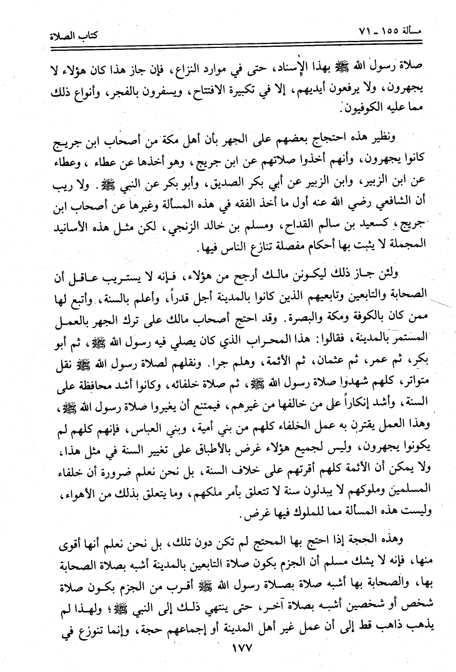 صَلَاةَ رَسُولِ اللَّهِ - صَلَّى اللَّهُ عَلَيْهِ وَسَلَّمَ - بِهَذَا الْإِسْنَادِ، حَتَّى فِي مَوَارِدِ النِّزَاعِ، فَإِنْ جَازَ هَذَا كَانَ هَؤُلَاءِ لَا يَجْهَرُونَ، وَلَا يَرْفَعُونَ أَيْدِيَهُمْ، إلَّا فِي تَكْبِيرَةِ الِافْتِتَاحِ، وَيُسْفِرُونَ بِالْفَجْرِ، وَأَنْوَاعُ ذَلِكَ مِمَّا عَلَيْهِ الْكُوفِيُّونَ.