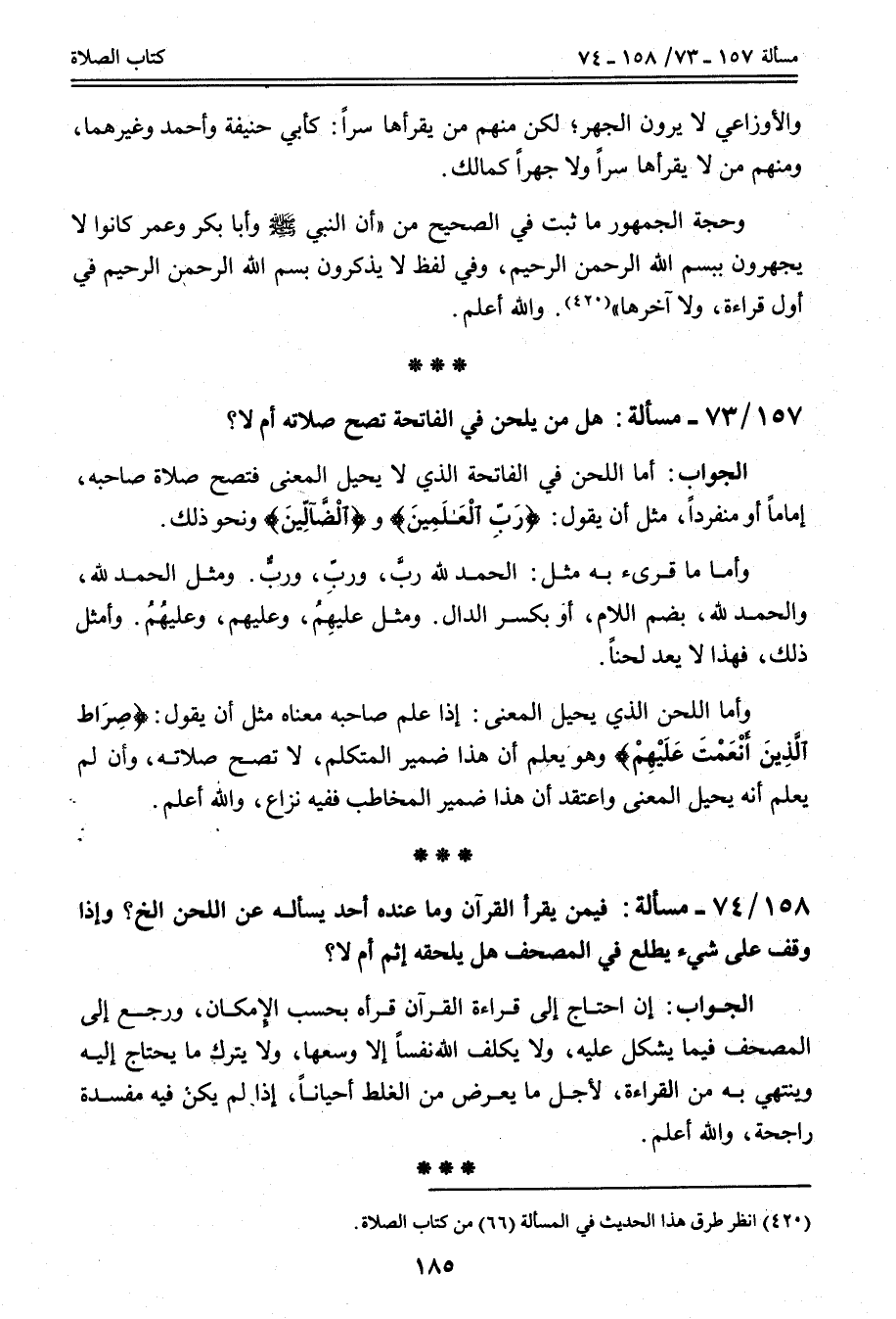157 - 73 مَسْأَلَةٌ: