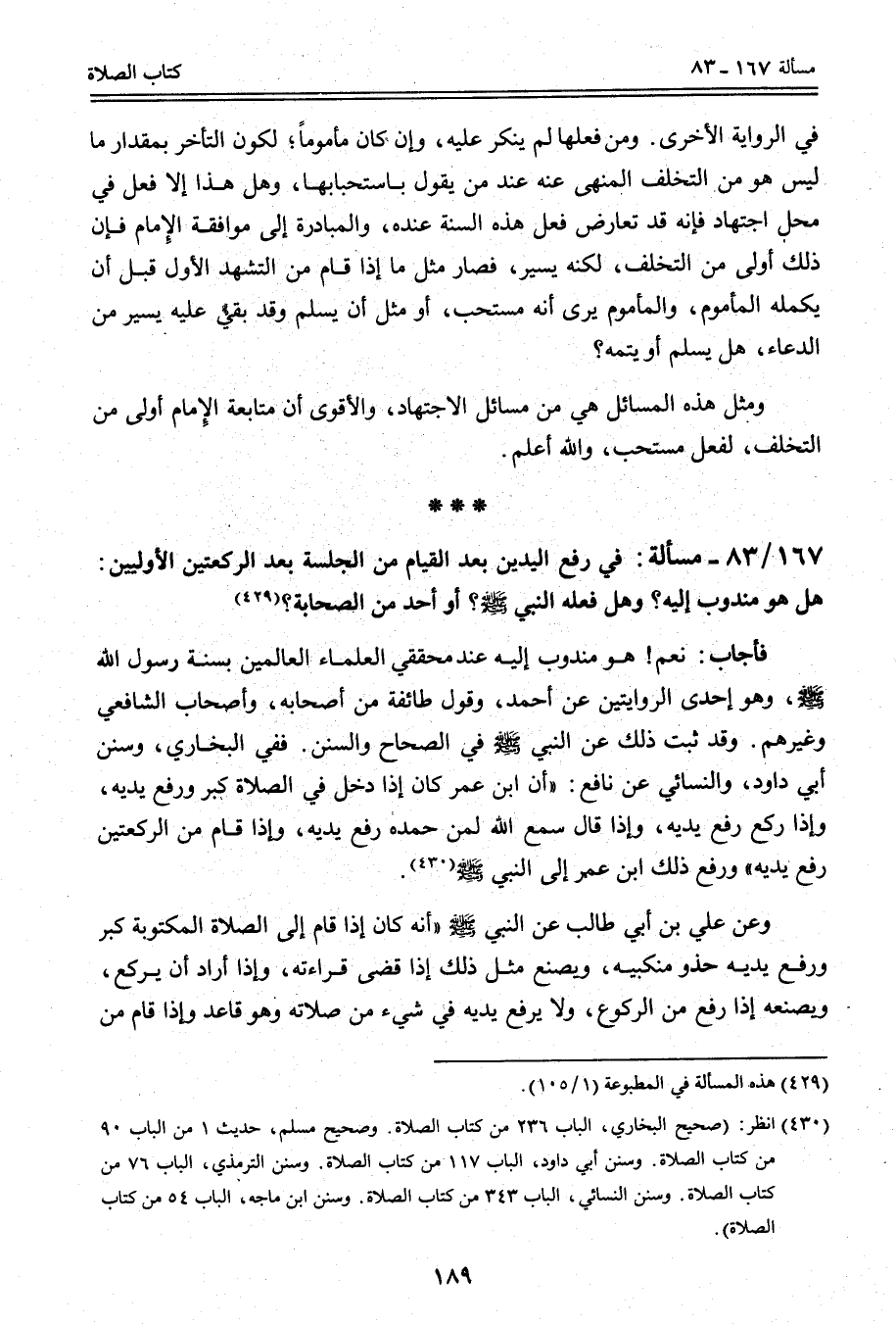 [مَسْأَلَةٌ رَفَعَ الْيَدَيْنِ بَعْدَ الْقِيَامِ مِنْ الْجِلْسَةِ بَعْدَ الرَّكْعَتَيْنِ الْأُولَيَيْنِ]