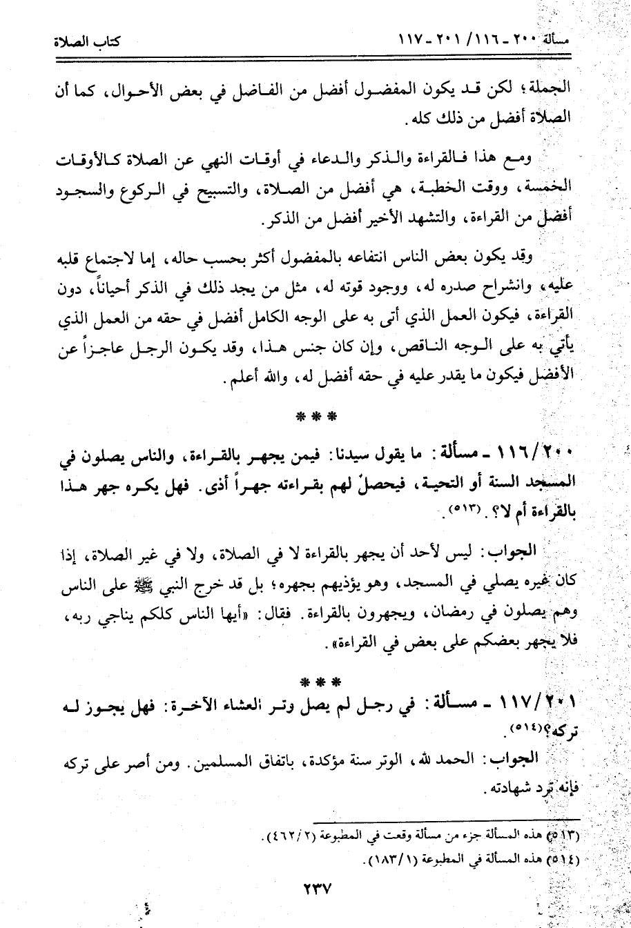 الْجَوَابُ: الْحَمْدُ لِلَّهِ، الْوِتْرُ سُنَّةٌ مُؤَكَّدَةٌ، بِاتِّفَاقِ الْمُسْلِمِينَ. وَمَنْ أَصَرَّ عَلَى تَرْكِهِ فَإِنَّهُ تُرَدُّ شَهَادَتُهُ.