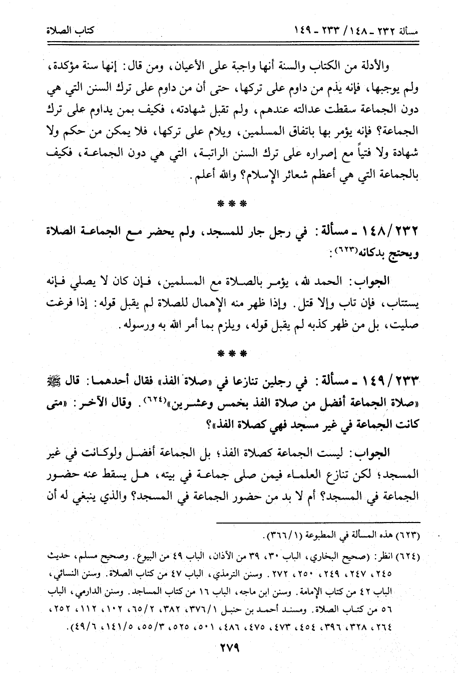 فِي رَجُلَيْنِ تَنَازَعَا فِي " صَلَاةِ الْفَذِّ " فَقَالَ أَحَدُهُمَا: قَالَ - صَلَّى اللَّهُ عَلَيْهِ وَسَلَّمَ - «صَلَاةُ الْجَمَاعَةِ أَفْضَلُ مِنْ صَلَاةِ الْفَذِّ بِخَمْسٍ وَعِشْرِينَ» ، قَالَ الْآخَرُ: " مَتَى كَانَتْ الْجَمَاعَةُ فِي غَيْرِ مَسْجِدٍ فَهِيَ كَصَلَاةِ الْفَذِّ "؟