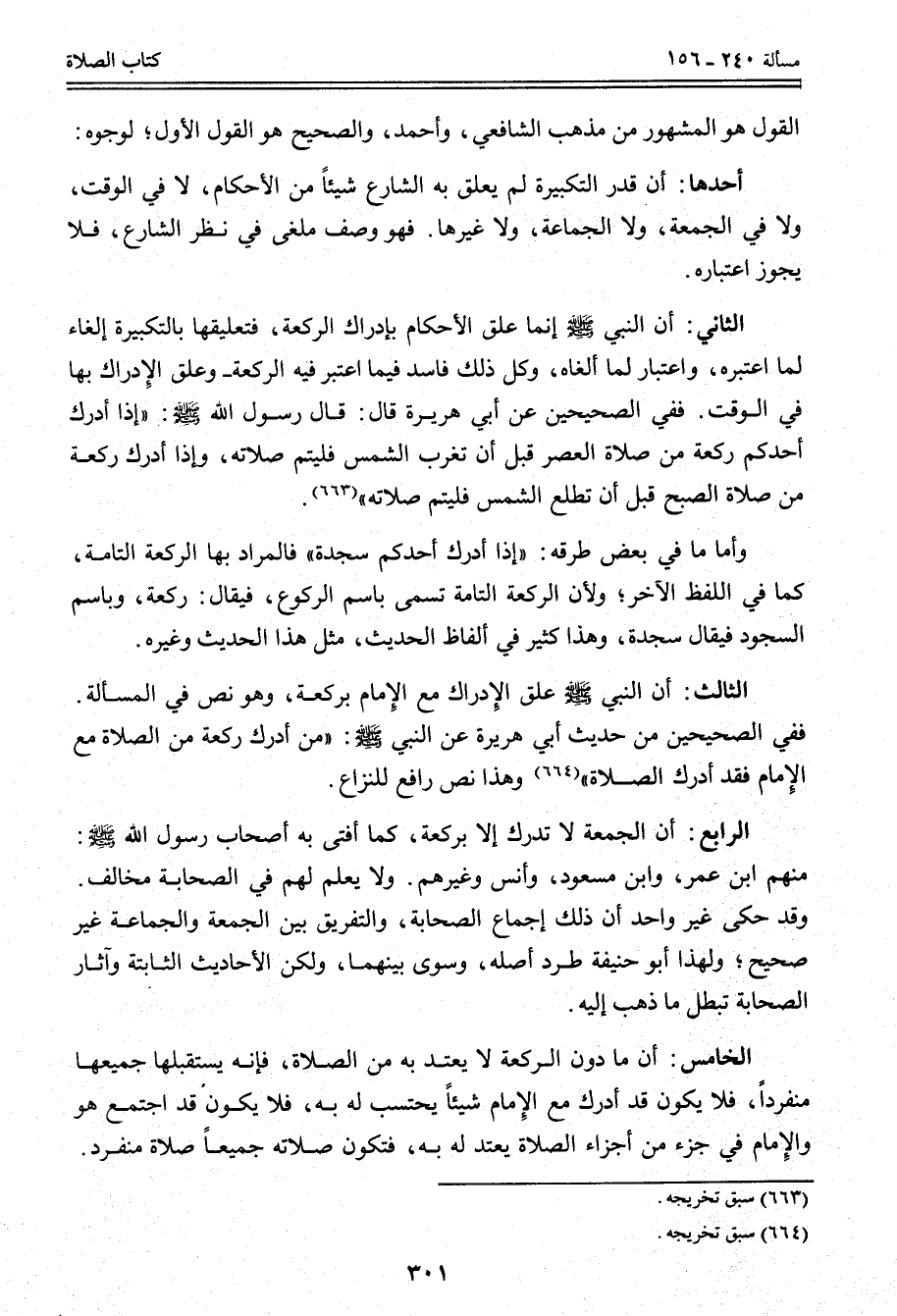 فَفِي الصَّحِيحَيْنِ مِنْ حَدِيثِ أَبِي هُرَيْرَةَ عَنْ النَّبِيِّ - صَلَّى اللَّهُ عَلَيْهِ وَسَلَّمَ -: «مَنْ أَدْرَكَ رَكْعَةً مِنْ الصَّلَاةِ مَعَ الْإِمَامِ فَقَدْ أَدْرَكَ الصَّلَاةَ» وَهَذَا نَصٌّ رَافِعٌ لِلنِّزَاعِ.