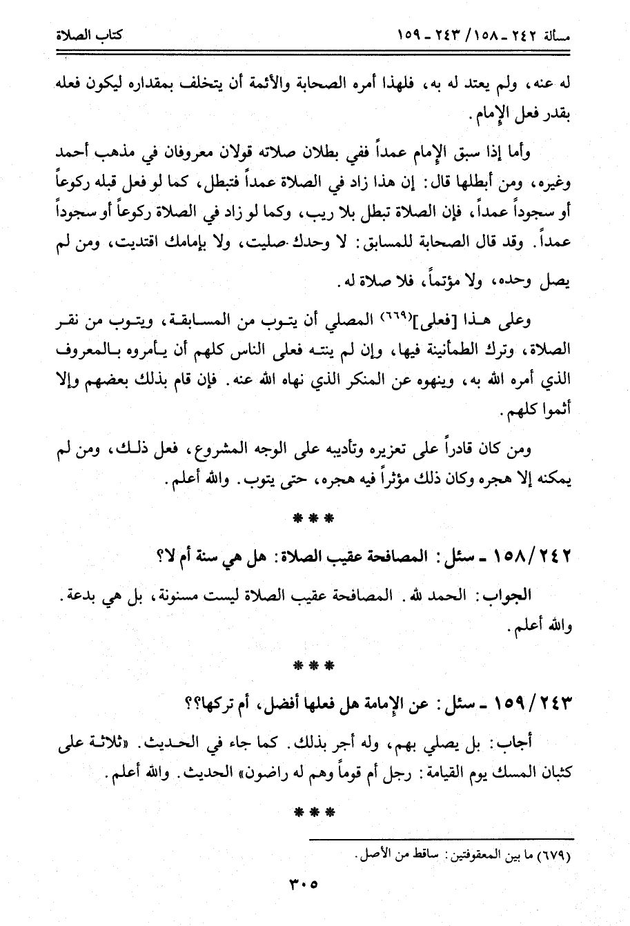 242 - 158 - سُئِلَ: الْمُصَافَحَةُ عَقِيبَ الصَّلَاةِ: هَلْ هِيَ سُنَّةٌ أَمْ لَا؟