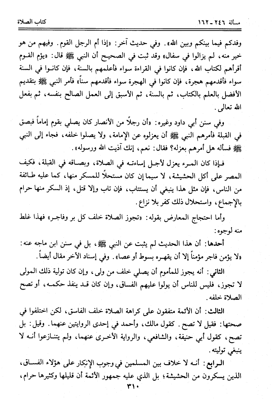 الثَّالِثُ: أَنَّ الْأَئِمَّةَ مُتَّفِقُونَ عَلَى كَرَاهَةِ الصَّلَاةِ خَلْفَ الْفَاسِقِ، لَكِنْ اخْتَلَفُوا فِي صِحَّتِهَا: فَقِيلَ: لَا تَصِحُّ.