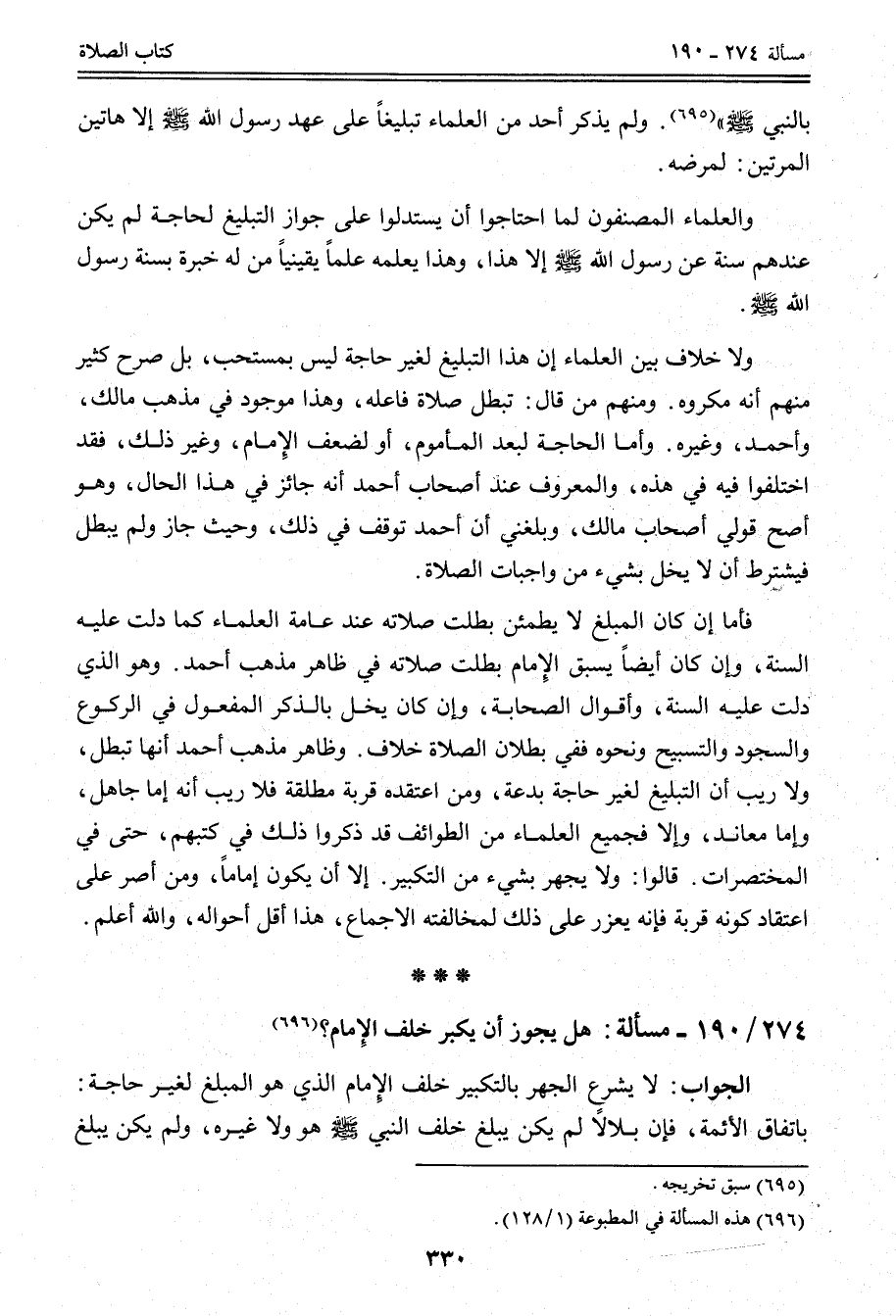 274 - 190 - مَسْأَلَةٌ: هَلْ يَجُوزُ أَنْ يُكَبِّرَ خَلْفَ الْإِمَامِ؟