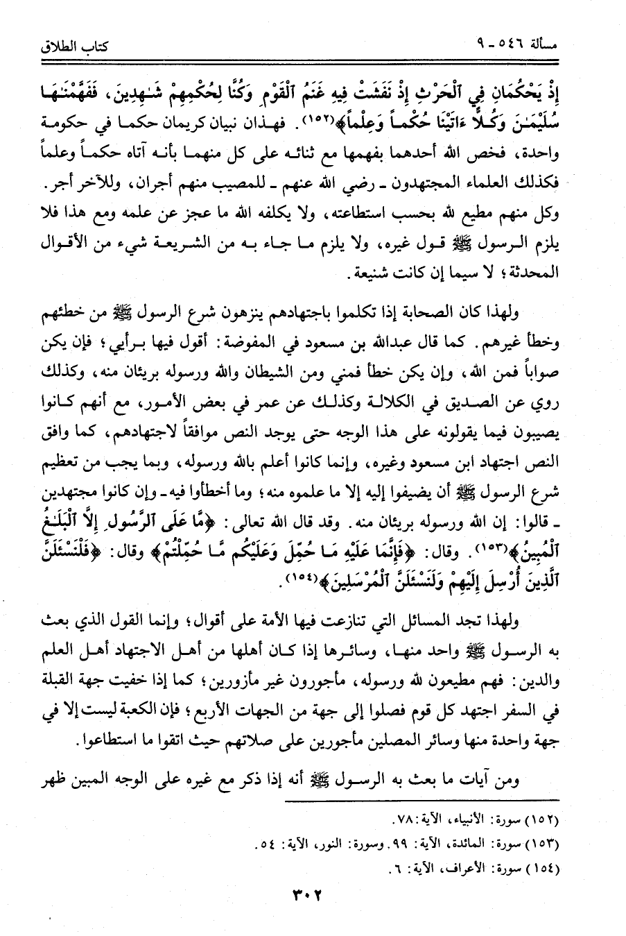 وَلِهَذَا كَانَ الصَّحَابَةُ إذَا تَكَلَّمُوا بِاجْتِهَادِهِمْ يُنَزِّهُونَ شَرْعَ الرَّسُولِ - صَلَّى اللَّهُ عَلَيْهِ وَسَلَّمَ - مِنْ خَطَئِهِمْ وَخَطَأِ غَيْرِهِمْ. كَمَا قَالَ عَبْدُ اللَّهِ بْنُ مَسْعُودٍ فِي الْمُفَوَّضَةِ: أَقُولُ فِيهَا بِرَأْيِي؛ فَإِنْ يَكُنْ صَوَابًا فَمِنْ اللَّهِ، وَإِنْ يَكُنْ خَطَأً فَمِنِّي وَمِنْ الشَّيْطَانِ، وَاَللَّهُ وَرَسُولُهُ بَرِيئَانِ مِنْهُ، وَكَذَلِكَ رُوِيَ عَنْ الصِّدِّيقِ فِي الْكَلَالَةِ وَكَذَلِكَ عَنْ عُمَرَ فِي بَعْضِ الْأُمُورِ، مَعَ أَنَّهُمْ كَانُوا يُصِيبُونَ فِيمَا يَقُولُونَهُ عَلَى هَذَا الْوَجْهِ حَتَّى يُوجَدَ النَّصُّ مُوَافِقًا لِاجْتِهَادِهِمْ، كَمَا وَافَقَ النَّصُّ اجْتِهَادَ ابْنِ مَسْعُودٍ وَغَيْرِهِ، وَإِنَّمَا كَانُوا أَعْلَمَ بِاَللَّهِ وَرَسُولِهِ، وَبِمَا يَجِبُ مِنْ تَعْظِيمِ شَرْعِ الرَّسُولِ - صَلَّى اللَّهُ عَلَيْهِ وَسَلَّمَ - أَنْ يُضِيفُوا إلَيْهِ إلَّا مَا عَلِمُوهُ مِنْهُ؛ وَمَا أَخْطَئُوا فِيهِ - وَإِنْ كَانُوا مُجْتَهِدِينَ - قَالُوا: إنَّ اللَّهَ وَرَسُولَهُ بَرِيئَانِ مِنْهُ. وَقَدْ قَالَ اللَّهُ تَعَالَى: {وَمَا عَلَى الرَّسُولِ إِلا الْبَلاغُ الْمُبِينُ} [النور: 54] . وَقَالَ: {فَإِنَّمَا عَلَيْهِ مَا حُمِّلَ وَعَلَيْكُمْ مَا حُمِّلْتُمْ} [النور: 54] وَقَالَ: {فَلَنَسْأَلَنَّ الَّذِينَ أُرْسِلَ إِلَيْهِمْ وَلَنَسْأَلَنَّ الْمُرْسَلِينَ} [الأعراف: 6] .