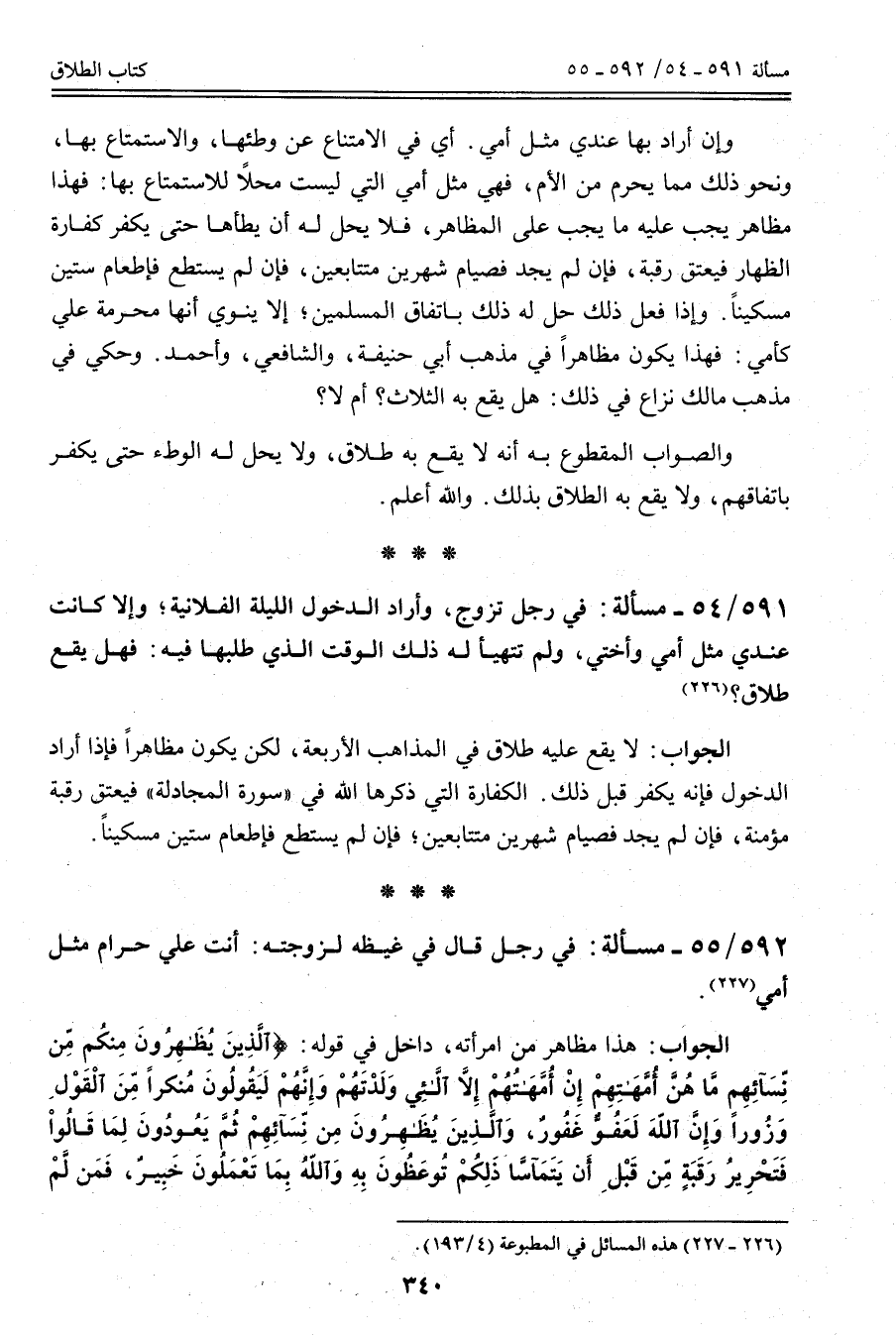 فِي رَجُلٍ قَالَ فِي غَيْظِهِ لِزَوْجَتِهِ: أَنْت عَلَيَّ حَرَامٌ مِثْلُ أُمِّي.