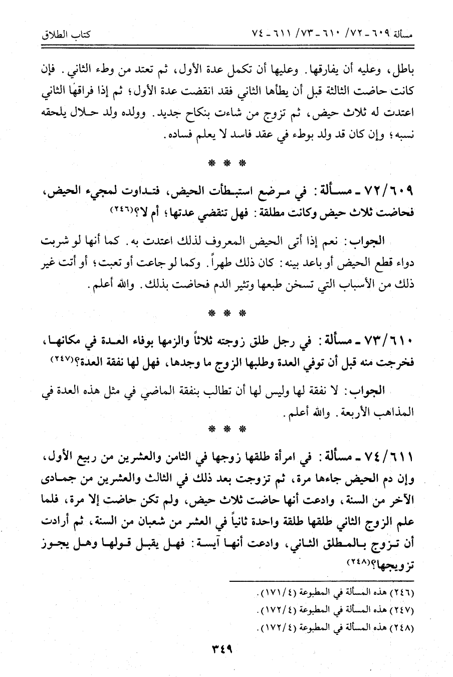 فِي مُرْضِعٍ اسْتَبْطَأَتْ الْحَيْضَ، فَتَدَاوَتْ لِمَجِيءِ الْحَيْضِ، فَحَاضَتْ ثَلَاثَ حِيَضٍ وَكَانَتْ مُطَلَّقَةً: فَهَلْ تَنْقَضِي عِدَّتُهَا؛ أَمْ لَا؟