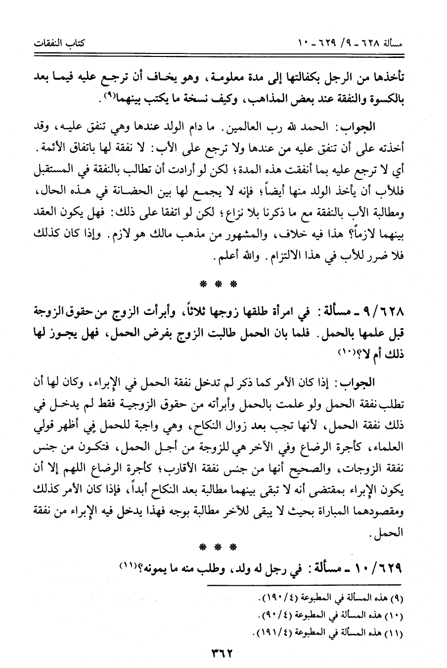 الْجَوَابُ: إذَا كَانَ الْأَمْرُ كَمَا ذُكِرَ لَمْ تَدْخُلْ نَفَقَةُ الْحَمْلِ فِي الْإِبْرَاءِ، وَكَانَ لَهَا أَنْ تَطْلُبَ نَفَقَةَ الْحَمْلِ وَلَوْ عَلِمَتْ بِالْحَمْلِ وَأَبْرَأَتْهُ مِنْ حُقُوقِ الزَّوْجِيَّةِ فَقَطْ لَمْ يَدْخُلْ فِي ذَلِكَ نَفَقَةُ الْحَمْلِ، لِأَنَّهَا تَجِبُ بَعْدَ زَوَالِ النِّكَاحِ، وَهِيَ وَاجِبَةٌ لِلْحَمْلِ فِي أَظْهَرِ قَوْلَيْ الْعُلَمَاءِ، كَأُجْرَةِ الرَّضَاعِ وَفِي الْآخَرِ هِيَ لِلزَّوْجَةِ مِنْ أَجْلِ الْحَمْلِ، فَتَكُونُ مِنْ جِنْسِ نَفَقَةِ الزَّوْجَاتِ، وَالصَّحِيحُ أَنَّهَا مِنْ جِنْسِ نَفَقَةِ الْأَقَارِبِ؛ كَأُجْرَةِ الرَّضَاعِ اللَّهُمَّ إلَّا أَنْ يَكُونَ الْإِبْرَاءُ بِمُقْتَضَى أَنَّهُ لَا تَبْقَى بَيْنَهُمَا مُطَالَبَةٌ بَعْدَ النِّكَاحِ أَبَدًا، فَإِذَا كَانَ الْأَمْرُ كَذَلِكَ وَمَقْصُودُهُمَا الْمُبَارَاةُ بِحَيْثُ لَا يَبْقَى لِلْآخَرِ مُطَالَبَةٌ بِوَجْهٍ فَهَذَا يَدْخُلُ فِيهِ الْإِبْرَاءُ مِنْ نَفَقَةِ الْحَمْلِ.