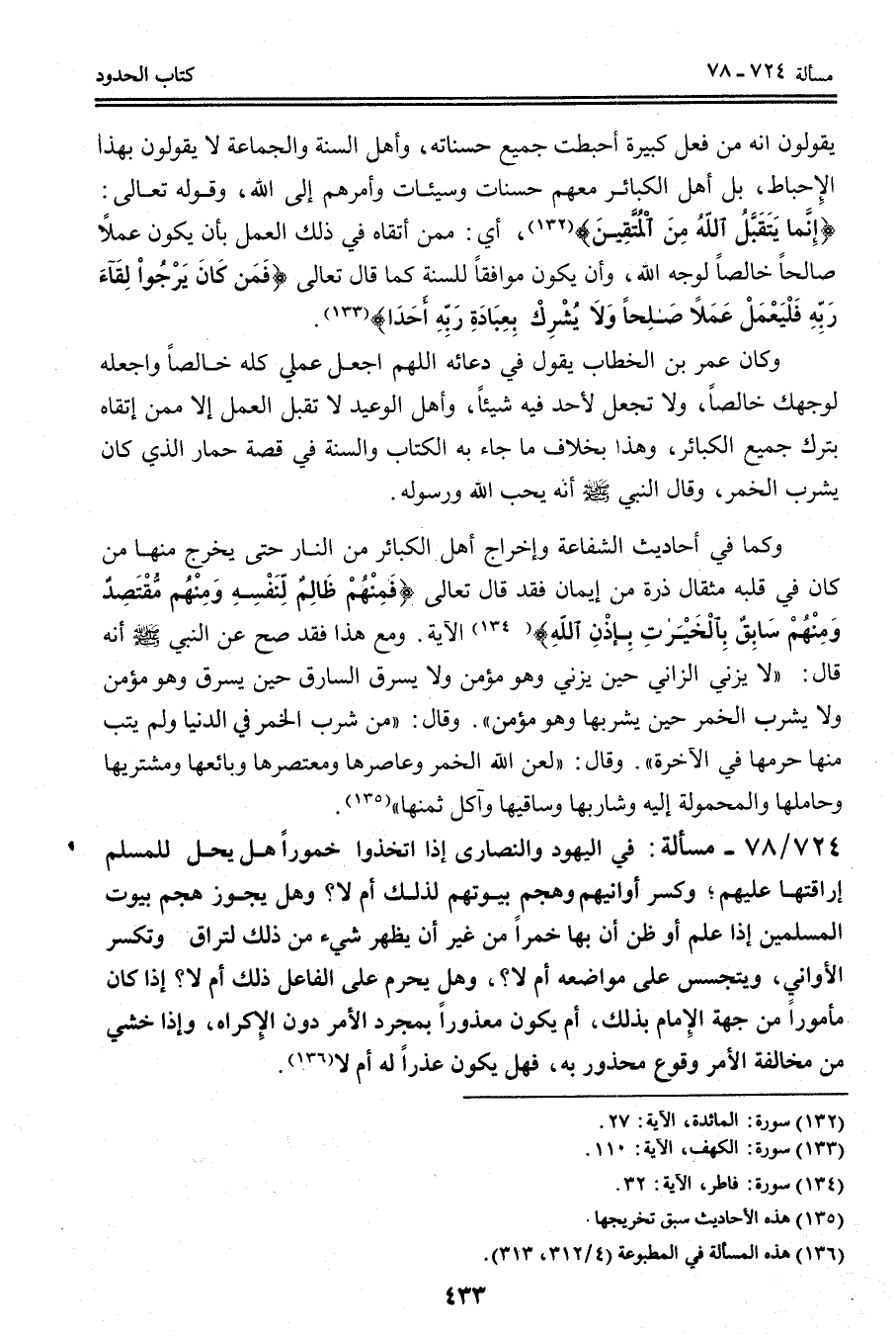 يَقُولُونَ: إنَّهُ مَنْ فَعَلَ كَبِيرَةً أَحْبَطَتْ جَمِيعَ حَسَنَاتِهِ، وَأَهْلُ السُّنَّةِ وَالْجَمَاعَةِ لَا يَقُولُونَ بِهَذَا الْإِحْبَاطِ، بَلْ أَهْلُ الْكَبَائِرِ مَعَهُمْ حَسَنَاتٌ وَسَيِّئَاتٌ وَأَمْرُهُمْ إلَى اللَّهِ، وَقَوْلُهُ تَعَالَى: {إِنَّمَا يَتَقَبَّلُ اللَّهُ مِنَ الْمُتَّقِينَ} [المائدة: 27] ، أَيْ: مِمَّنْ اتَّقَاهُ فِي ذَلِكَ الْعَمَلِ بِأَنْ يَكُونَ عَمَلًا صَالِحًا خَالِصًا لِوَجْهِ اللَّهِ، وَأَنْ يَكُونَ مُوَافِقًا لِلسُّنَّةِ كَمَا قَالَ تَعَالَى {فَمَنْ كَانَ يَرْجُوا لِقَاءَ رَبِّهِ فَلْيَعْمَلْ عَمَلا صَالِحًا وَلا يُشْرِكْ بِعِبَادَةِ رَبِّهِ أَحَدًا} [الكهف: 110] .