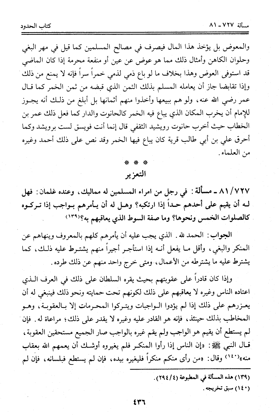 التَّعْزِير 727 - 81 مَسْأَلَةٌ: