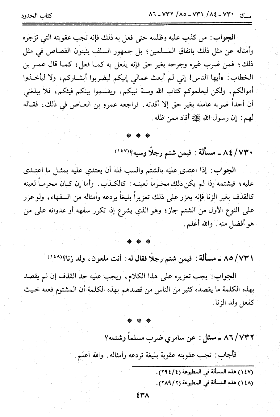732 - 86 - سُئِلَ: عَنْ سَامِرِيٍّ ضَرَبَ مُسْلِمًا وَشَتَمَهُ؟