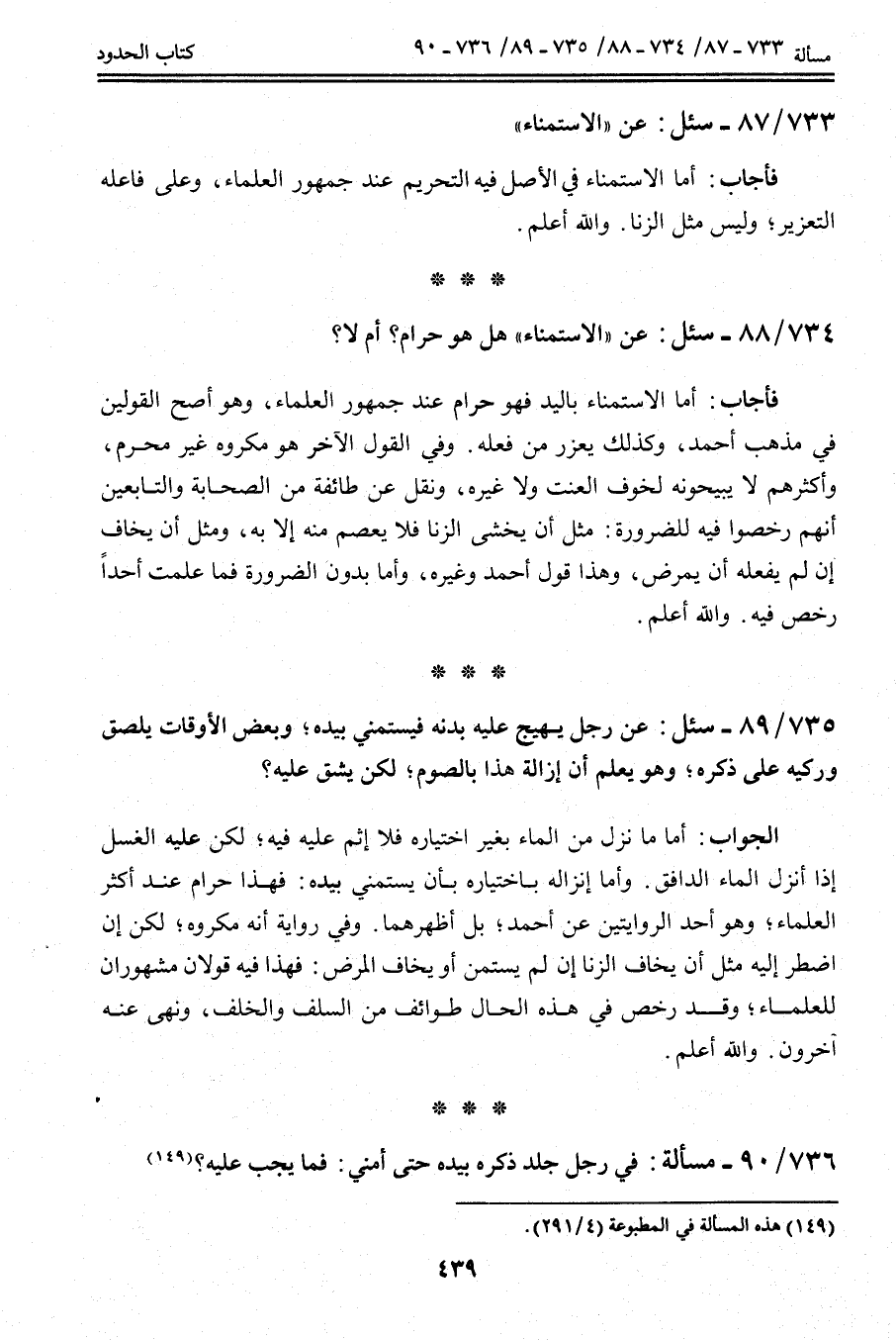 734 - 88 - سُئِلَ: عَنْ " الِاسْتِمْنَاءِ " هَلْ هُوَ حَرَامٌ؟ أَمْ لَا؟