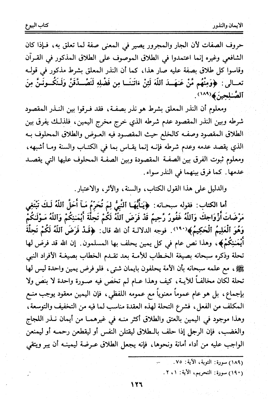 أَمَّا الْكِتَابُ: فَقَوْلُهُ سُبْحَانَهُ: {يَا أَيُّهَا النَّبِيُّ لِمَ تُحَرِّمُ مَا أَحَلَّ اللَّهُ لَكَ تَبْتَغِي مَرْضَاتَ أَزْوَاجِكَ وَاللَّهُ غَفُورٌ رَحِيمٌ} [التحريم: 1] {قَدْ فَرَضَ اللَّهُ لَكُمْ تَحِلَّةَ أَيْمَانِكُمْ وَاللَّهُ مَوْلاكُمْ وَهُوَ الْعَلِيمُ الْحَكِيمُ} [التحريم: 2] . فَوَجْهُ الدَّلَالَةِ أَنَّ اللَّهَ قَالَ: {قَدْ فَرَضَ اللَّهُ لَكُمْ تَحِلَّةَ أَيْمَانِكُمْ} [التحريم: 2] ، وَهَذَا نَصٌّ عَامٌّ فِي كُلِّ يَمِينٍ يَحْلِفُ بِهَا الْمُسْلِمُونَ. إنَّ اللَّهَ قَدْ فَرَضَ لَهَا تَحِلَّةً وَذَكَرَهُ سُبْحَانَهُ بِصِيغَةِ الْخِطَابِ لِلْأُمَّةِ بَعْدَ تَقَدُّمِ الْخِطَابِ بِصِيغَةِ الْإِفْرَادِ لِلنَّبِيِّ - صَلَّى اللَّهُ عَلَيْهِ وَسَلَّمَ -.