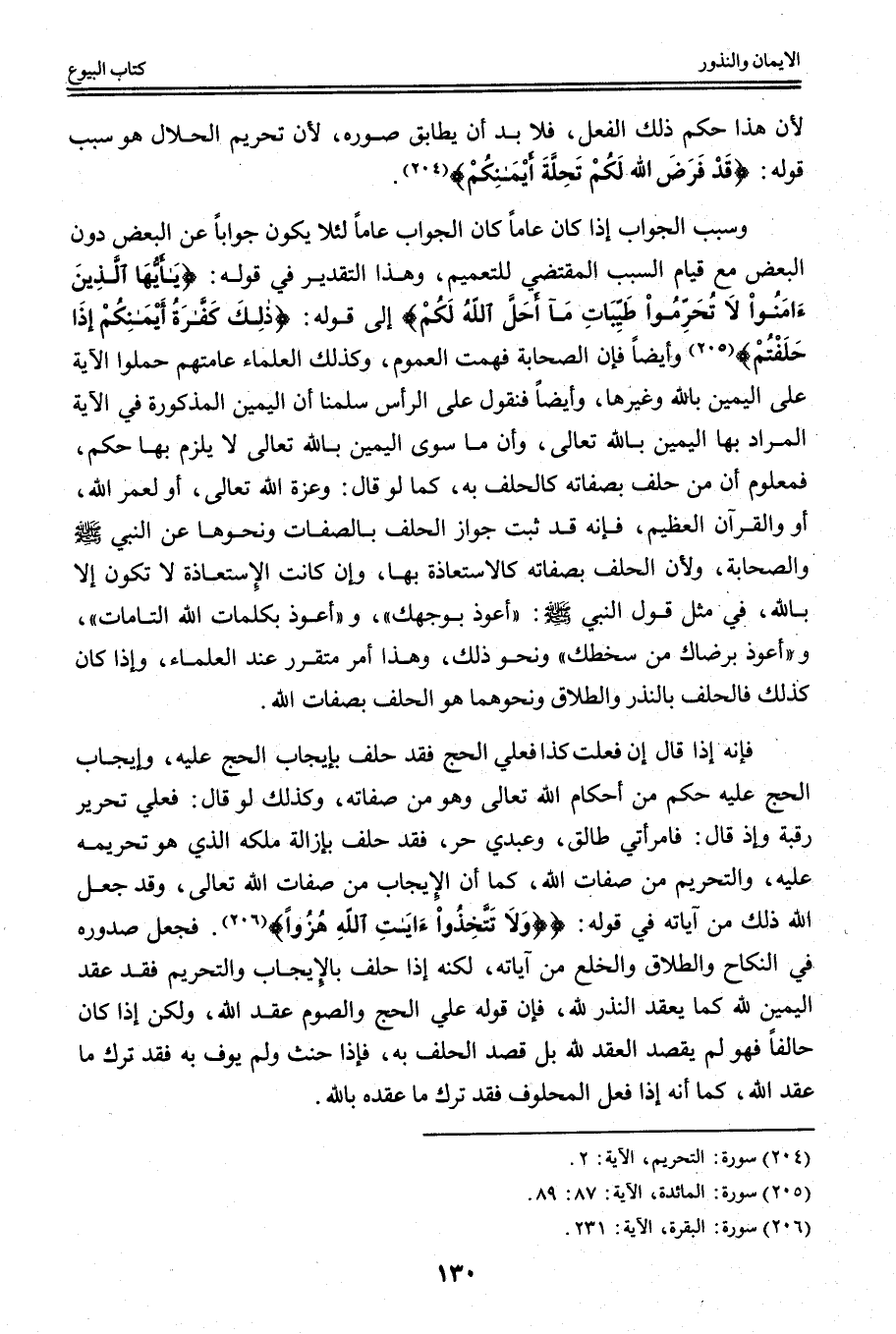 فَإِنَّهُ إذَا قَالَ إنْ فَعَلْت كَذَا فَعَلَيَّ الْحَجُّ فَقَدْ حَلَفَ بِإِيجَابِ الْحَجِّ عَلَيْهِ، وَإِيجَابُ الْحَجِّ عَلَيْهِ حُكْمٌ مِنْ أَحْكَامِ اللَّهِ تَعَالَى وَهُوَ مِنْ صِفَاتِهِ، وَكَذَلِكَ لَوْ قَالَ: فَعَلَيَّ تَحْرِيرُ رَقَبَةٍ وَإِذْ قَالَ: فَامْرَأَتِي طَالِقٌ، وَعَبْدِي حُرٌّ، فَقَدْ حَلَفَ بِإِزَالَةِ مِلْكِهِ الَّذِي هُوَ تَحْرِيمُهُ عَلَيْهِ، وَالتَّحْرِيمُ مِنْ صِفَاتِ اللَّهِ، كَمَا أَنَّ الْإِيجَابَ مِنْ صِفَاتِ اللَّهِ تَعَالَى، وَقَدْ جَعَلَ اللَّهُ ذَلِكَ مِنْ آيَاتِهِ فِي قَوْلِهِ: {وَلا تَتَّخِذُوا آيَاتِ اللَّهِ هُزُوًا} [البقرة: 231] . فَجَعَلَ صُدُورَهُ فِي النِّكَاحِ وَالطَّلَاقِ وَالْخُلْعِ مِنْ آيَاتِهِ، لَكِنَّهُ إذَا حَلَفَ بِالْإِيجَابِ وَالتَّحْرِيمِ فَقَدْ عَقَدَ الْيَمِينَ لِلَّهِ كَمَا يَعْقِدُ النَّذْرَ لِلَّهِ، فَإِنَّ قَوْلَهُ عَلَيَّ الْحَجُّ وَالصَّوْمُ عَقْدٌ لِلَّهِ، وَلَكِنْ إذَا كَانَ حَالِفًا فَهُوَ لَمْ يَقْصِدْ الْعَقْدَ لِلَّهِ بَلْ قَصَدَ الْحَلِفَ بِهِ، فَإِذَا حَنِثَ وَلَمْ يُوفِ بِهِ فَقَدْ تَرَكَ مَا عَقَدَ لِلَّهِ، كَمَا أَنَّهُ إذَا فَعَلَ الْمَحْلُوفَ فَقَدْ تَرَكَ مَا عَقَدَهُ بِاَللَّهِ.