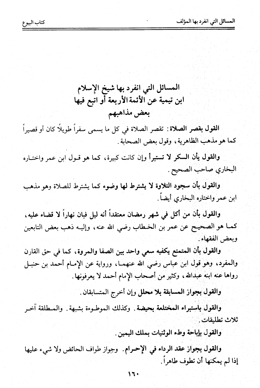 [الْمَسَائِلُ الَّتِي انْفَرَدَ بِهَا شَيْخُ الْإِسْلَامِ ابْنُ تَيْمِيَّةَ]