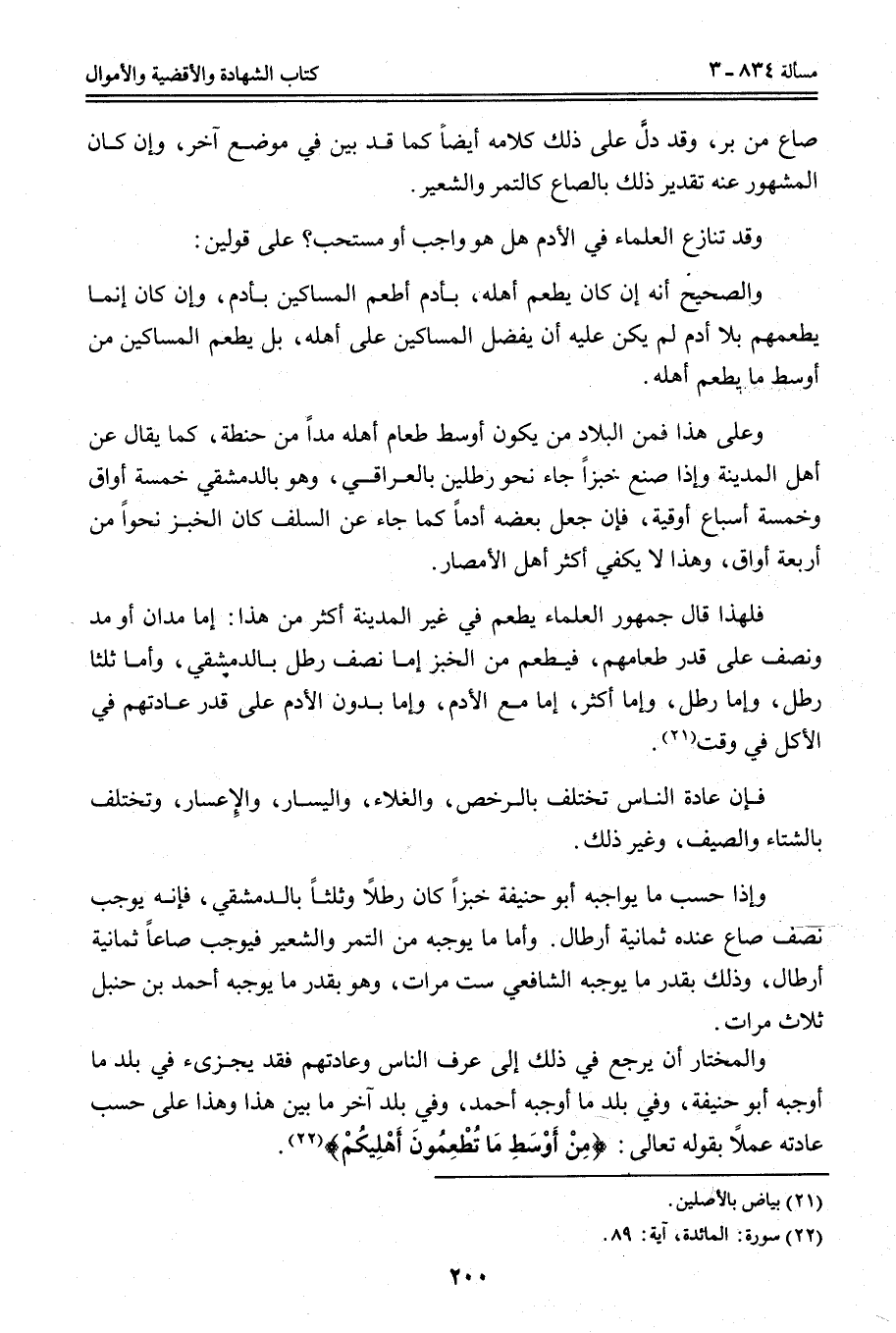 وَعَلَى هَذَا فَمِنْ الْبِلَادِ مَنْ يَكُونُ أَوْسَطُ طَعَامِ أَهْلِهِ مُدًّا مِنْ حِنْطَةٍ، كَمَا يُقَالُ عَنْ أَهْلِ الْمَدِينَةِ وَإِذَا صَنَعَ خُبْزًا جَاءَ نَحْوَ رِطْلَيْنِ بِالْعِرَاقِيِّ، وَهُوَ بِالدِّمَشْقِيِّ خَمْسَةُ أَوَاقٍ وَخَمْسَةُ أَسْبَاعِ أُوقِيَّةٍ، فَإِنْ جَعَلَ بَعْضَهُ أُدْمًا كَمَا جَاءَ عَنْ السَّلَفِ كَانَ الْخُبْزُ نَحْوًا مِنْ أَرْبَعَةِ أَوَاقٍ، وَهَذَا لَا يَكْفِي أَكْثَرَ أَهْلِ الْأَمْصَارِ.