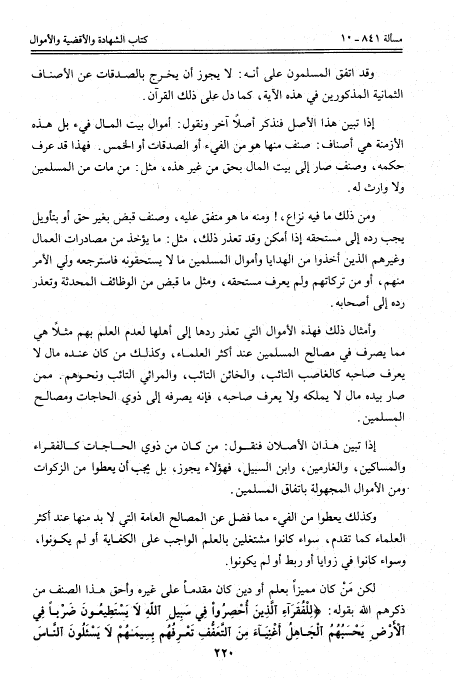وَقَدْ اتَّفَقَ الْمُسْلِمُونَ عَلَى أَنَّهُ: لَا يَجُوزُ أَنْ يَخْرُجَ بِالصَّدَقَاتِ عَنْ الْأَصْنَافِ الثَّمَانِيَةِ الْمَذْكُورِينَ فِي هَذِهِ الْآيَةِ، كَمَا دَلَّ عَلَى ذَلِكَ الْقُرْآنُ إذَا تَبَيَّنَ هَذَا الْأَصْلُ فَنَذْكُرُ أَصْلًا آخَرَ وَنَقُولُ: أَمْوَالُ بَيْتِ الْمَالِ فَيْءٌ بَلْ هَذِهِ الْأَزْمِنَةُ هِيَ أَصْنَافٌ: صِنْفٌ مِنْهَا هُوَ مِنْ الْفَيْءِ أَوْ الصَّدَقَاتِ أَوْ الْخُمُسِ. فَهَذَا قَدْ عُرِفَ حُكْمُهُ، وَصِنْفٌ صَارَ إلَى بَيْتِ الْمَالِ بِحَقٍّ مِنْ غَيْرِ هَذِهِ، مِثْلَ: مَنْ مَاتَ مِنْ الْمُسْلِمِينَ وَلَا وَارِثَ لَهُ.