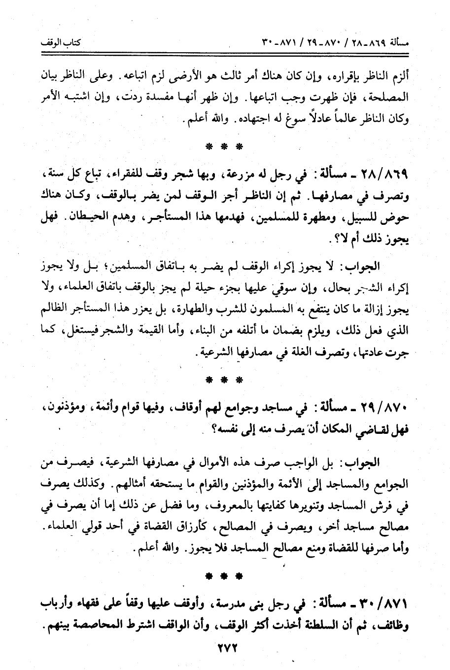 الْجَوَابُ: بَلْ الْوَاجِبُ صَرْفُ هَذِهِ الْأَمْوَالِ فِي مَصَارِفِهَا الشَّرْعِيَّةِ، فَيُصْرَفُ مِنْ الْجَوَامِعِ وَالْمَسَاجِدِ إلَى الْأَئِمَّةِ وَالْمُؤَذِّنِينَ وَالْقَوَّامِ مَا يَسْتَحِقُّهُ أَمْثَالُهُمْ.