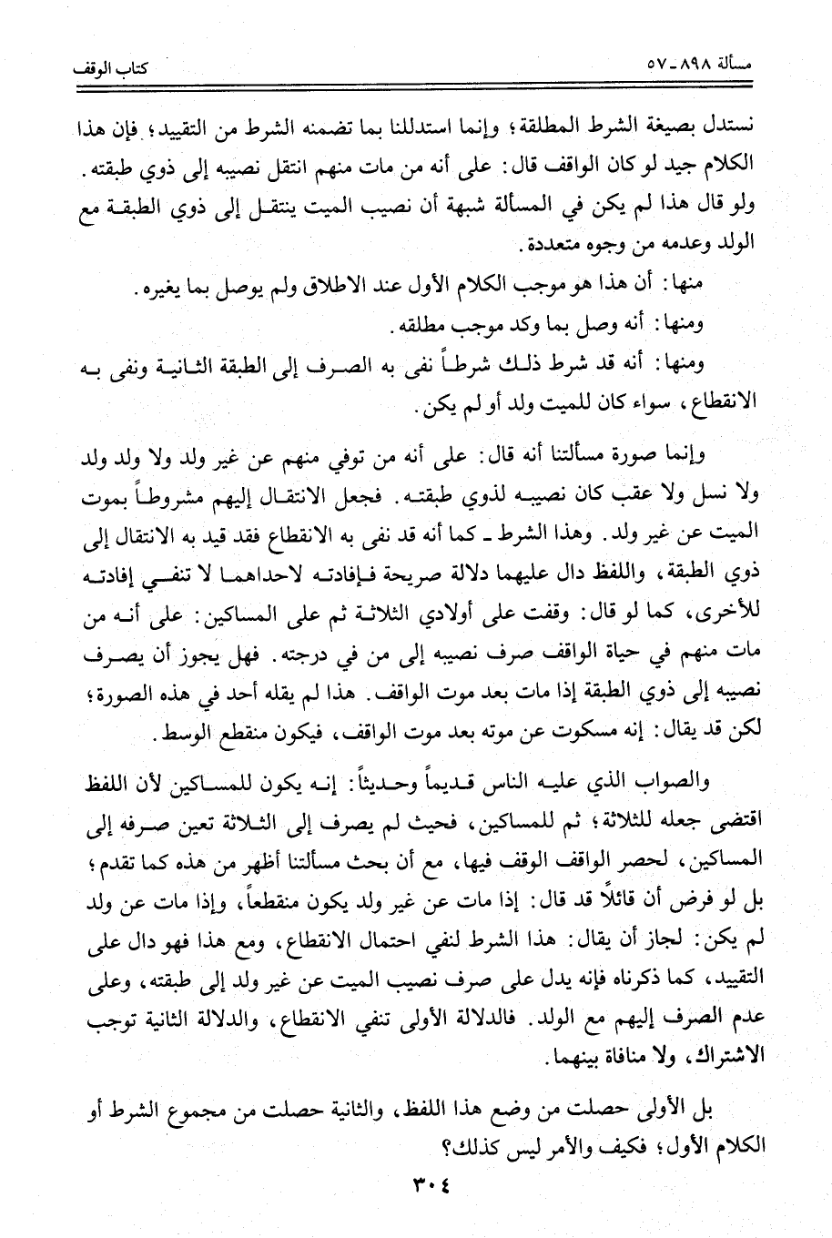 نَسْتَدِلَّ بِصِيغَةِ الشَّرْطِ الْمُطْلَقَةِ؛ فَإِنَّمَا اسْتَدْلَلْنَا بِمَا تَضَمَّنَهُ الشَّرْطُ مِنْ التَّقْيِيدِ؛ فَإِنَّ هَذَا الْكَلَامَ جَيِّدٌ لَوْ كَانَ الْوَاقِفُ قَالَ: عَلَى أَنَّهُ مَنْ مَاتَ مِنْهُمْ انْتَقَلَ نَصِيبُهُ إلَى ذَوِي طَبَقَتِهِ. وَلَوْ قَالَ هَذَا لَمْ يَكُنْ فِي الْمَسْأَلَةِ شُبْهَةُ أَنَّ نَصِيبَ الْمَيِّتِ يَنْتَقِلُ إلَى ذَوِي الطَّبَقَةِ مَعَ الْوَلَدِ وَعَدَمُهُ مِنْ وُجُوهٍ مُتَعَدِّدَةٍ.
