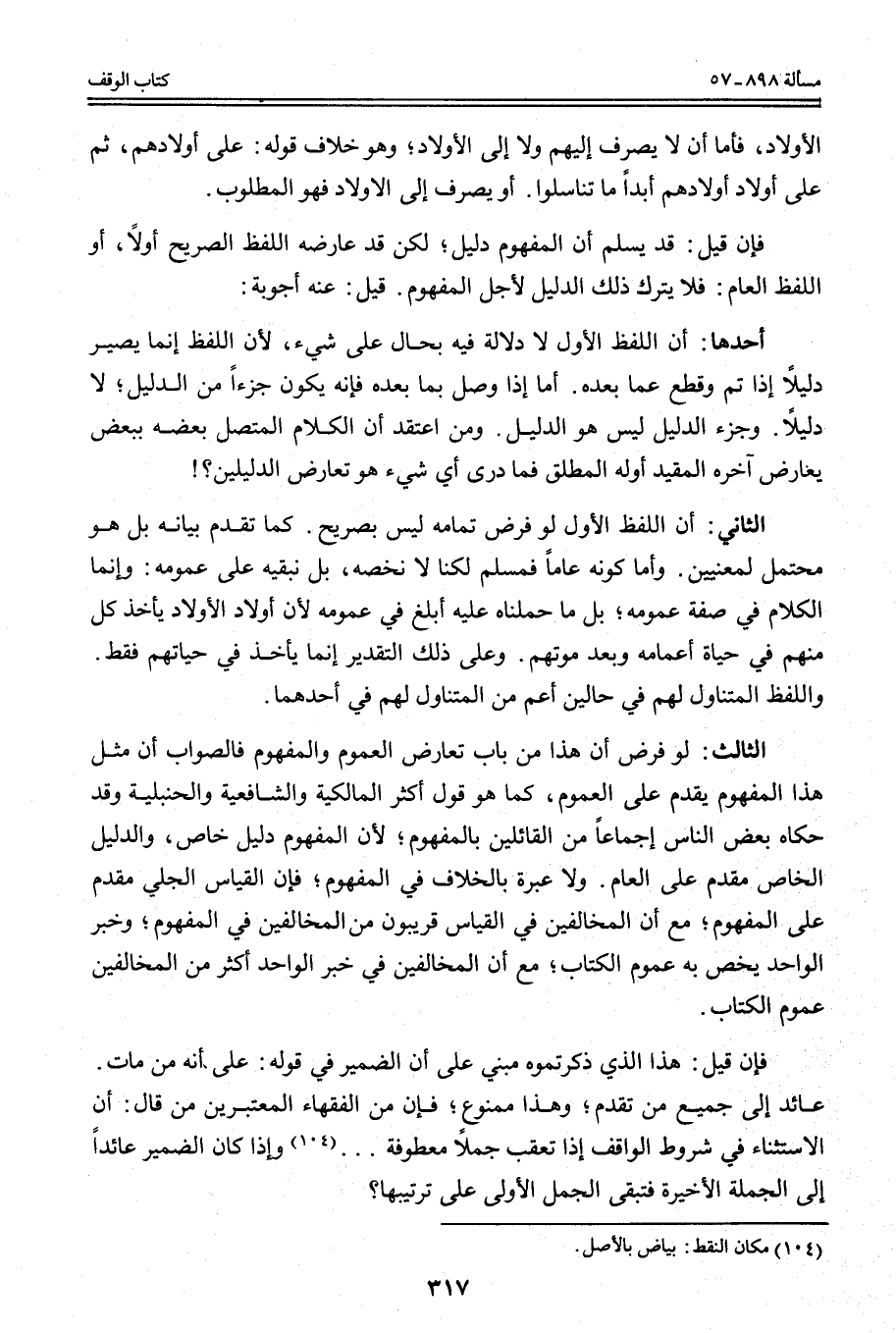 فَإِنْ قِيلَ: هَذَا الَّذِي ذَكَرْتُمُوهُ مَبْنِيٌّ عَلَى أَنَّ الضَّمِيرَ فِي قَوْلِهِ: عَلَى أَنَّهُ مَنْ مَاتَ. عَائِدٌ إلَى جَمِيعِ مَنْ تَقَدَّمَ؛ وَهَذَا مَمْنُوعٌ؛ فَإِنَّ مِنْ الْفُقَهَاءِ الْمُعْتَبَرِينَ مَنْ قَالَ: إنَّ الِاسْتِثْنَاءَ فِي شُرُوطِ الْوَاقِفِ إذَا تَعَقَّبَ جُمَلًا مَعْطُوفَةً وَإِذَا كَانَ الضَّمِيرُ عَائِدًا إلَى الْجُمْلَةِ الْأَخِيرَةِ فَتَبْقَى الْجُمَلُ الْأُولَى عَلَى تَرْتِيبهَا؟
