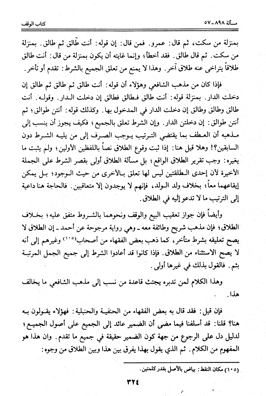 وَأَيْضًا فَإِنَّ جَوَازَ تَعْقِيبِ الْبَيْعِ وَالْوَقْفِ وَنَحْوِهِمَا بِالشُّرُوطِ مُتَّفَقٌ عَلَيْهِ؛ بِخِلَافِ الطَّلَاقِ؛ فَإِنَّ مَذْهَبَ شُرَيْحٍ وَطَائِفَةٍ مَعَهُ - وَهِيَ رِوَايَةٌ مَرْجُوحَةٌ عَنْ أَحْمَدَ - أَنَّ الطَّلَاقَ لَا يَصِحُّ تَعْلِيقُهُ بِشَرْطٍ مُتَأَخِّرٍ، كَمَا ذَهَبَ بَعْضُ الْفُقَهَاءِ مِنْ أَصْحَابِ وَغَيْرِهِمْ إلَى أَنَّهُ لَا يَصِحُّ الِاسْتِثْنَاءُ مِنْ الطَّلَاقِ. فَإِذَا كَانُوا قَدْ أَعَادُوا الشَّرْطَ إلَى جَمِيعِ الْجُمَلِ الْمُرَتَّبَةِ بِثُمَّ. فَالْقَوْلُ بِذَلِكَ فِي غَيْرِهَا أَوْلَى.