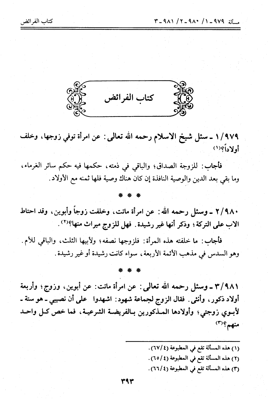 ِ سُئِلَ شَيْخُ الْإِسْلَامِ - رَحِمَهُ اللَّهُ تَعَالَى -: عَنْ امْرَأَةٍ تُوُفِّيَ زَوْجُهَا، وَخَلَفَ أَوْلَادًا؟