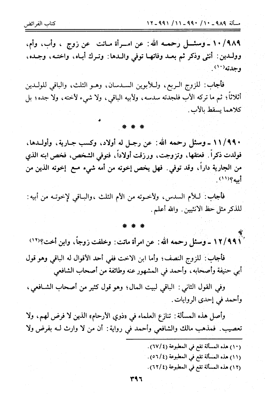 991 - 12 وَسُئِلَ - رَحِمَهُ اللَّهُ -: عَنْ امْرَأَةٍ مَاتَتْ: وَخَلَفَتْ زَوْجًا، وَابْنَ أُخْتٍ؟