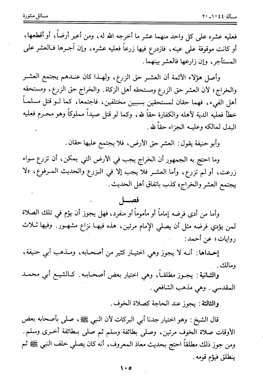 وَأَصْلُ هَؤُلَاءِ الْأَئِمَّةِ أَنَّ الْعُشْرَ حَقُّ الزَّرْعِ، وَلِهَذَا كَانَ عِنْدَهُمْ يَجْتَمِعُ الْعُشْرُ وَالْخَرَاجُ؛ لِأَنَّ الْعُشْرَ حَقُّ الزَّرْعِ وَمُسْتَحِقُّهُ أَهْلُ الزَّكَاةِ.