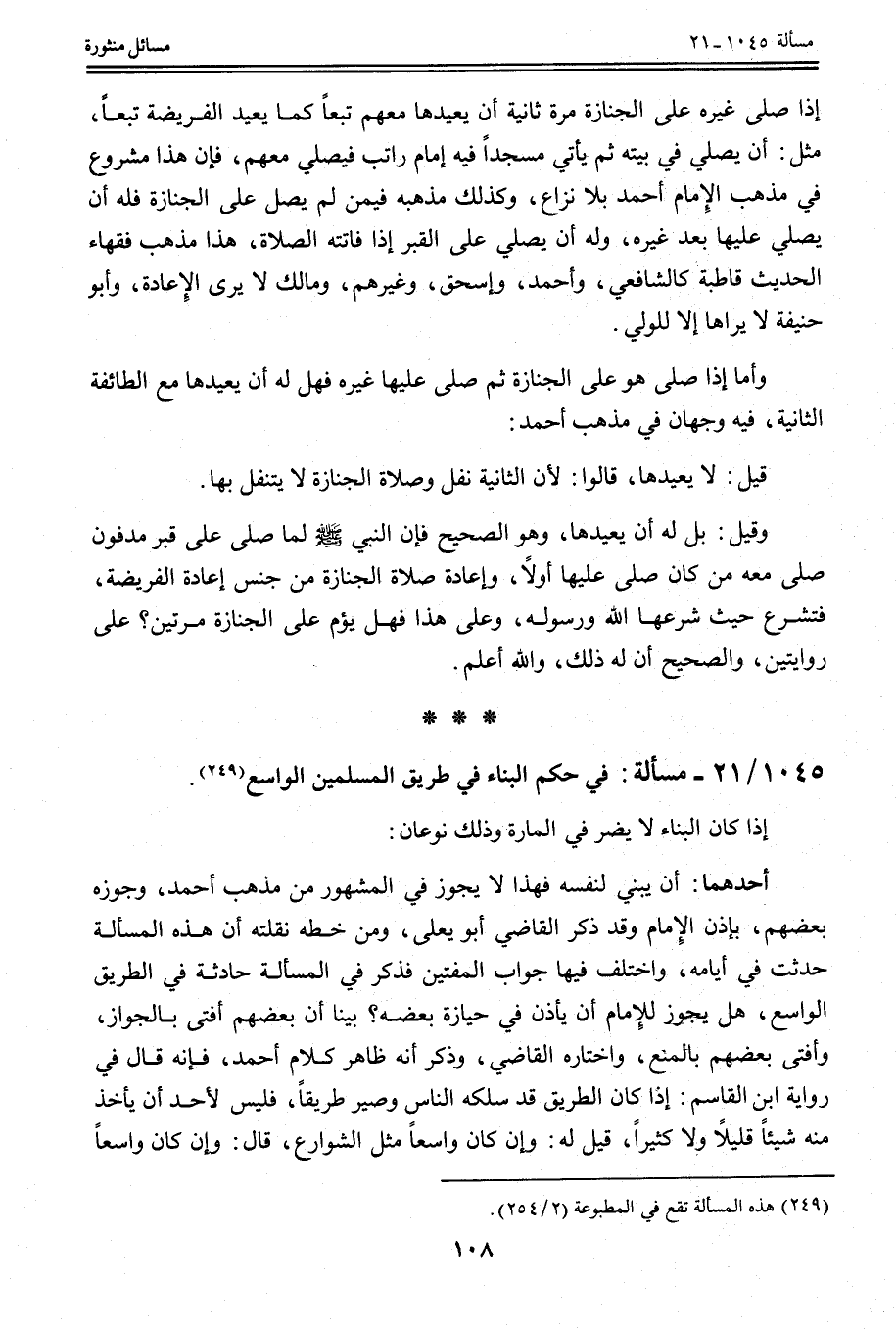 [مَسْأَلَةٌ فِي حُكْمِ الْبِنَاءِ فِي طَرِيقِ الْمُسْلِمِينَ الْوَاسِعِ]