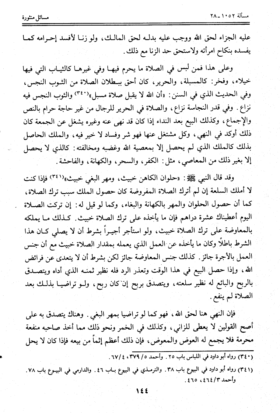 وَقَدْ قَالَ النَّبِيُّ: «حُلْوَانُ الْكَاهِنِ خَبِيثٌ، وَمَهْرُ الْبَغْيِ خَبِيثٌ» فَإِذَا كُنْت لَا أَمْلِكُ السِّلْعَةَ إنْ لَمْ أَتْرُكْ الصَّلَاةَ الْمَفْرُوضَةَ كَانَ حُصُولُ الْمِلْكِ سَبَبَ تَرْكِ الصَّلَاةِ، كَمَا أَنَّ حُصُولَ الْحُلْوَانِ وَالْمَهْرِ بِالْكِهَانَةِ وَالْبِغَاءِ، وَكَمَا لَوْ قِيلَ لَهُ: إنْ تَرَكْت الصَّلَاةَ الْيَوْمَ أَعْطَيْنَاك عَشَرَةَ دَرَاهِمَ فَإِنَّ مَا يَأْخُذُهُ عَلَى تَرْكِ الصَّلَاةِ خَبِيثٌ.
