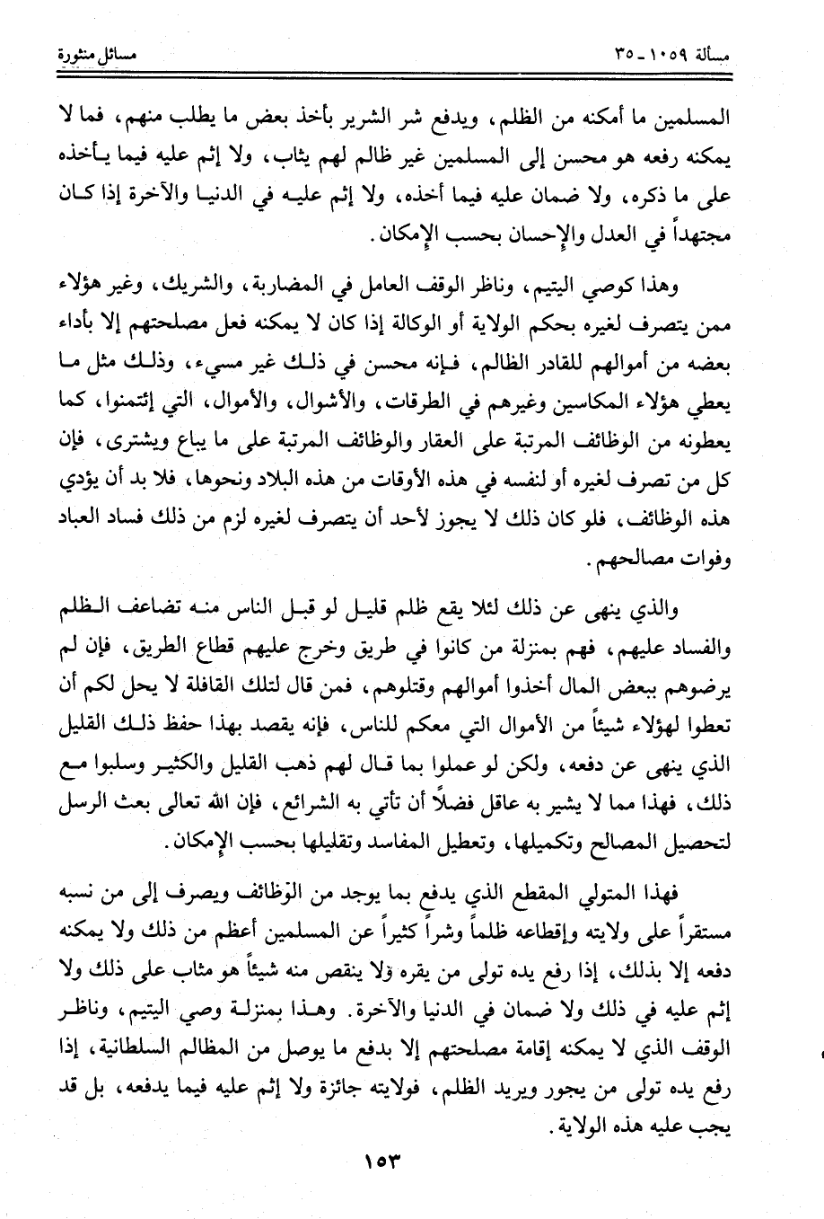 وَاَلَّذِي يُنْهَى عَنْ ذَلِكَ لِئَلَّا يَقَعَ ظُلْمٌ قَلِيلٌ لَوْ قَبِلَ النَّاسُ مِنْهُ تَضَاعَفَ الظُّلْمُ وَالْفَسَادُ عَلَيْهِمْ، فَهُمْ بِمَنْزِلَةِ مَنْ كَانُوا فِي طَرِيقٍ وَخَرَجَ عَلَيْهِمْ قُطَّاعُ الطَّرِيقِ، فَإِنْ لَمْ يُرْضُوهُمْ بِبَعْضِ الْمَالِ أَخَذُوا أَمْوَالَهُمْ وَقَتَلُوهُمْ، فَمَنْ قَالَ لِتِلْكَ الْقَافِلَةِ لَا يَحِلُّ لَكُمْ أَنْ تُعْطُوا لِهَؤُلَاءِ شَيْئًا مِنْ الْأَمْوَالِ الَّتِي مَعَكُمْ لِلنَّاسِ، فَإِنَّهُ يَقْصِدُ بِهَذَا حِفْظَ ذَلِكَ الْقَلِيلِ الَّذِي يُنْهَى عَنْ دَفْعِهِ، وَلَكِنْ لَوْ عَمِلُوا بِمَا قَالَ لَهُمْ ذَهَبَ الْقَلِيلُ وَالْكَثِيرُ وَسُلِبُوا مَعَ ذَلِكَ، فَهَذَا مِمَّا لَا يُشِيرُ بِهِ عَاقِلٌ فَضْلًا أَنْ تَأْتِيَ بِهِ الشَّرَائِعُ، فَإِنَّ اللَّهَ تَعَالَى بَعَثَ الرُّسُلَ