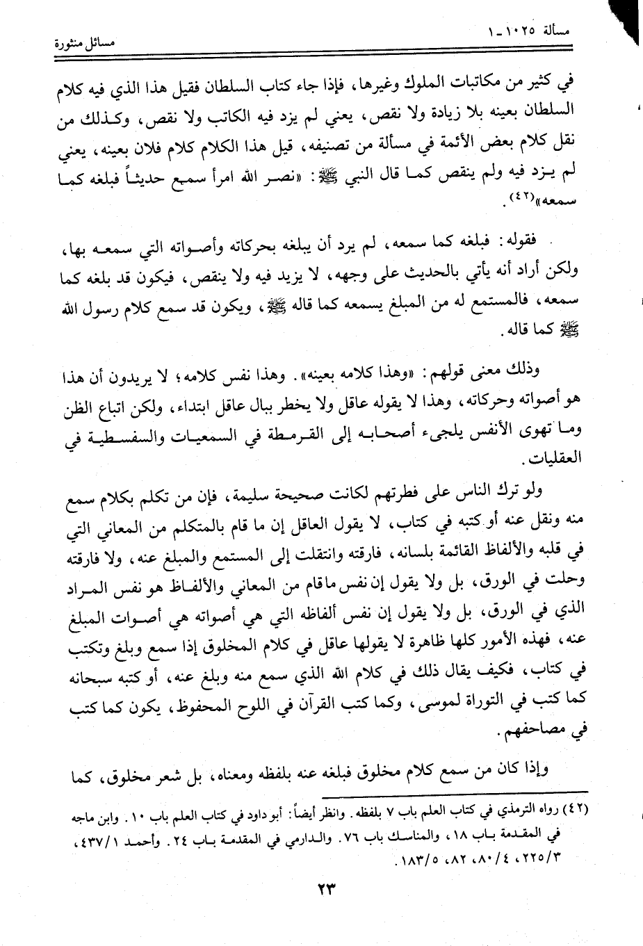 فِي كَثِيرٍ مِنْ مُكَاتَبَاتِ الْمُلُوكِ وَغَيْرِهَا، فَإِذَا جَاءَ كِتَابُ السُّلْطَانِ فَقِيلَ هَذَا الَّذِي فِيهِ كَلَامُ السُّلْطَانِ بِعَيْنِهِ بِلَا زِيَادَةٍ وَلَا نَقْصٍ، يَعْنِي لَمْ يَزِدْ فِيهِ الْكَاتِبُ وَلَا نَقَصَ، وَكَذَلِكَ مَنْ نَقَلَ كَلَامَ بَعْضِ الْأَئِمَّةِ فِي مَسْأَلَةٍ مِنْ تَصْنِيفِهِ، قِيلَ هَذَا الْكَلَامُ كَلَامُ فُلَانٍ بِعَيْنِهِ، يَعْنِي لَمْ يَزِدْ فِيهِ وَلَمْ يَنْقُصْ كَمَا قَالَ النَّبِيُّ - صَلَّى اللَّهُ عَلَيْهِ وَسَلَّمَ -: «نَضَرَ اللَّهُ امْرَأً سَمِعَ حَدِيثًا فَبَلَّغَهُ كَمَا سَمِعَهُ» .