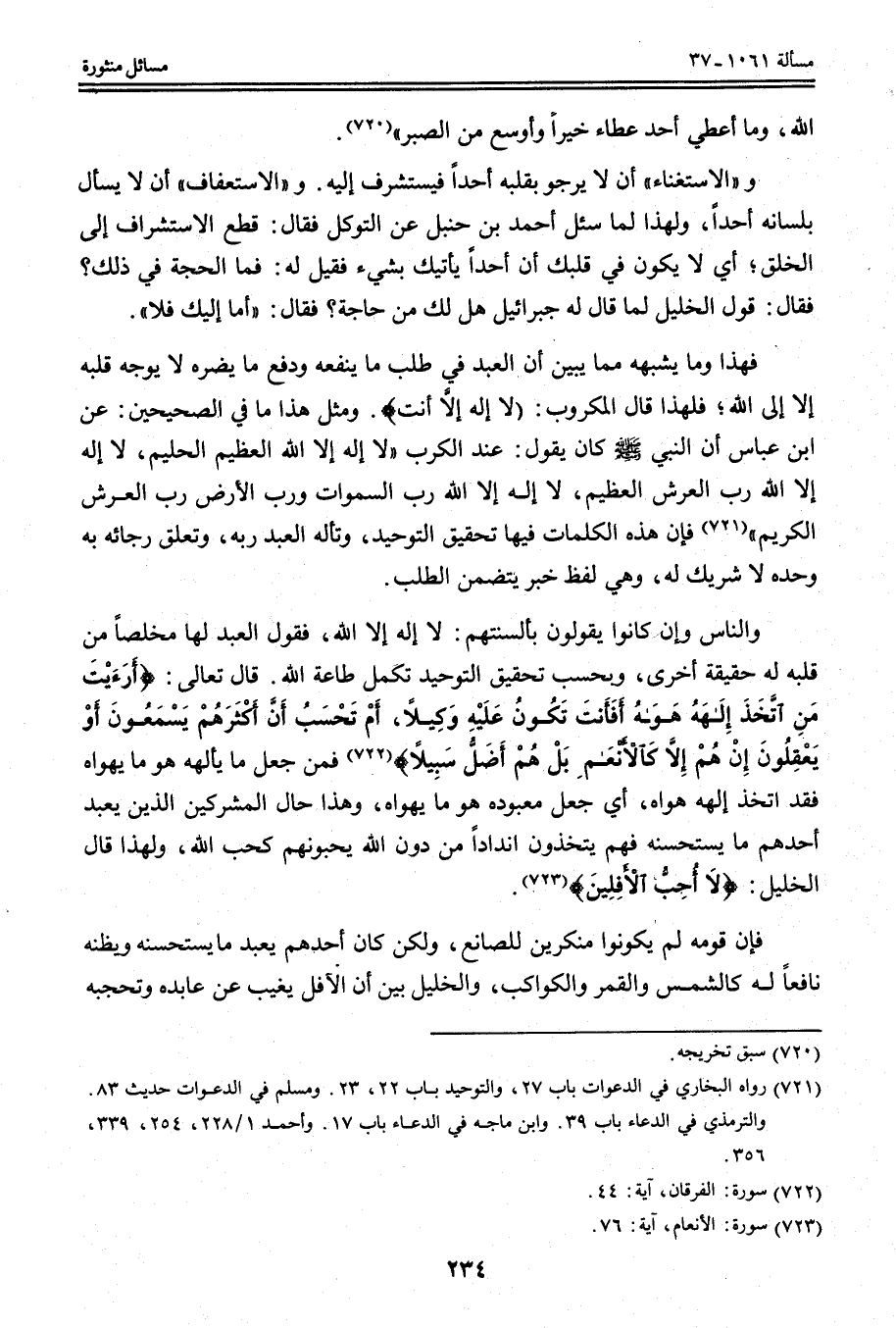 فَهَذَا وَمَا يُشْبِهُهُ مِمَّا يُبَيِّنُ أَنَّ الْعَبْدَ فِي طَلَبِ مَا يَنْفَعُهُ وَدَفْعِ مَا يَضُرُّهُ لَا يُوَجِّهُ قَلْبَهُ إلَّا إلَى اللَّهِ؛ فَلِهَذَا قَالَ الْمَكْرُوبُ: {لا إِلَهَ إِلا أَنْتَ} [الأنبياء: 87] .