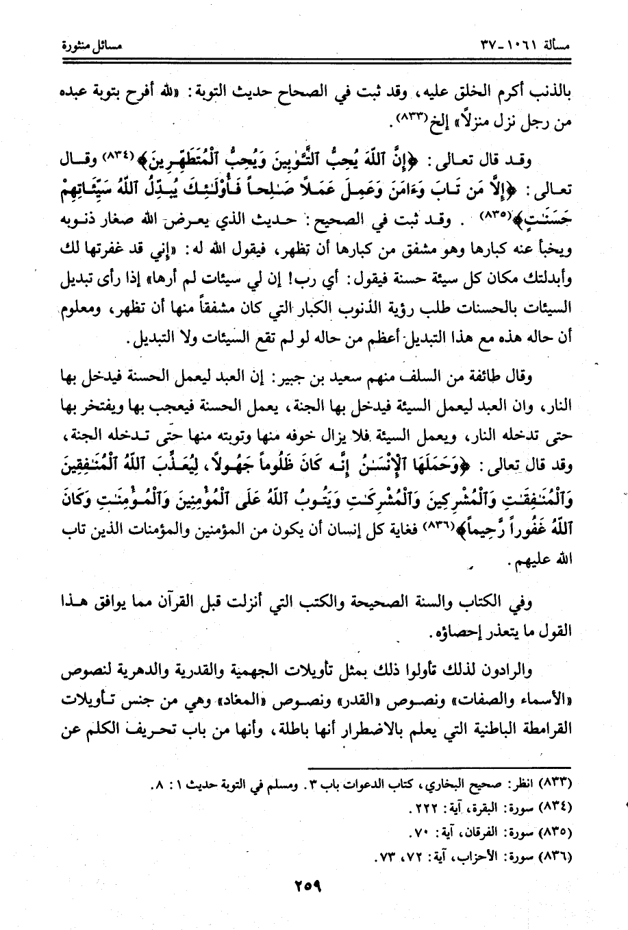 وَفِي الْكِتَابِ وَالسُّنَّةِ الصَّحِيحَةِ وَالْكُتُبِ الَّتِي أُنْزِلَتْ قَبْلَ الْقُرْآنِ مِمَّا يُوَافِقُ هَذَا الْقَوْلَ مَا يَتَعَذَّرُ إحْصَاؤُهُ.