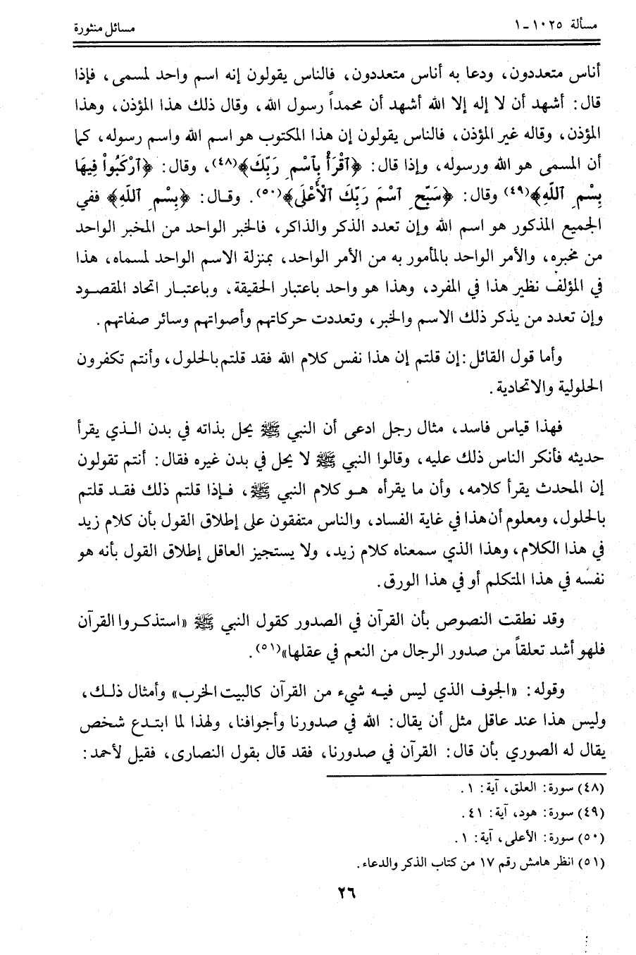 وَأَمَّا قَوْلُ الْقَائِلِ: إنْ قُلْتُمْ إنَّ هَذَا نَفْسُ كَلَامِ اللَّهِ فَقَدْ قُلْتُمْ بِالْحُلُولِ، وَأَنْتُمْ تُكَفِّرُونَ الْحُلُولِيَّةَ وَالِاتِّحَادِيَّةَ.