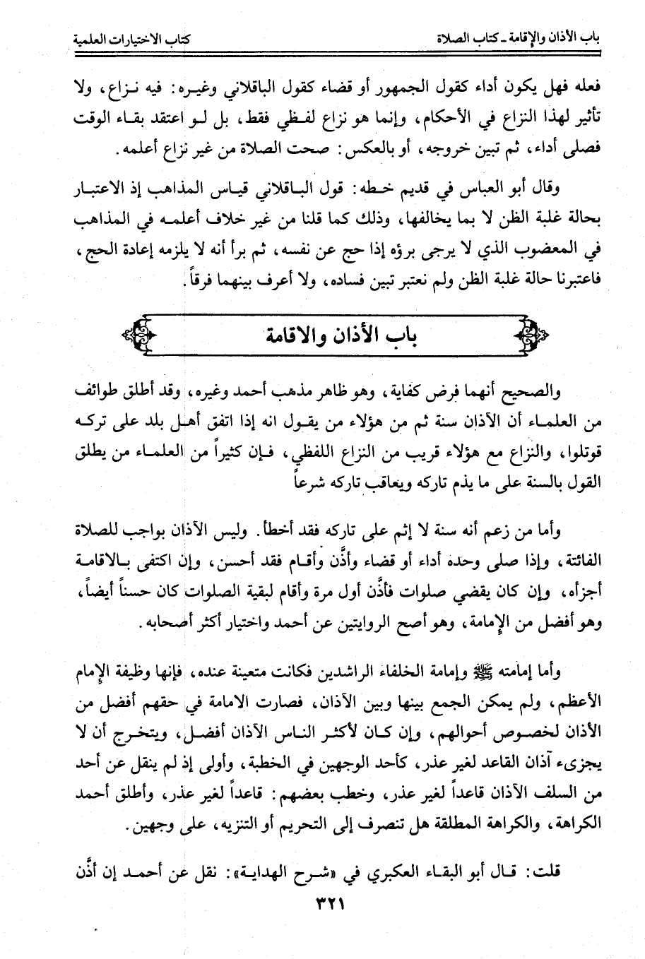 قُلْت: قَالَ أَبُو الْبَقَاءِ الْعُكْبَرِيُّ فِي شَرْحِ الْهِدَايَةِ ": نُقِلَ عَنْ أَحْمَدَ إنْ أَذَّنَ