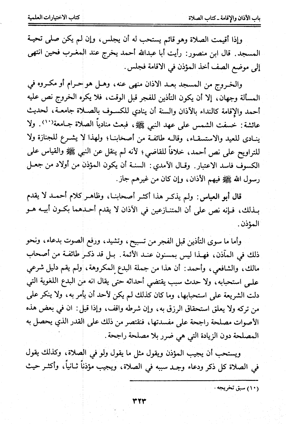 وَأَمَّا مَا سِوَى التَّأْذِينِ قَبْلَ الْفَجْرِ مِنْ تَسْبِيحٍ، وَتَشَهُّدٍ، وَرَفْعِ الصَّوْتِ بِدُعَاءٍ، وَنَحْوِ ذَلِكَ فِي الْمَآذِنِ، فَهَذَا لَيْسَ بِمَسْنُونٍ عِنْدَ الْأَئِمَّةِ. بَلْ قَدْ ذَكَرَ طَائِفَةٌ مِنْ أَصْحَابِ مَالِكٍ، وَالشَّافِعِيِّ، وَأَحْمَدَ: أَنَّ هَذَا مِنْ جُمْلَةِ الْبِدَعِ الْمَكْرُوهَةِ، وَلَمْ يَقُمْ دَلِيلٌ شَرْعِيٌّ عَلَى اسْتِحْبَابِهِ، وَلَا حَدَثَ سَبَبٌ يَقْتَضِي إحْدَاثَهُ حَتَّى يُقَالَ إنَّهُ مِنْ الْبِدَعِ اللُّغَوِيَّةِ الَّتِي دَلَّتْ الشَّرِيعَةُ عَلَى اسْتِحْبَابِهَا، وَمَا كَانَ كَذَلِكَ لَمْ يَكُنْ لِأَحَدٍ أَنْ يَأْمُرَ بِهِ، وَلَا يُنْكِرَ عَلَى مَنْ تَرَكَهُ وَلَا يُعَلِّقَ اسْتِحْقَاقَ الرِّزْقِ بِهِ، وَإِنْ شَرَطَهُ وَاقِفٌ، وَإِذَا قِيلَ: إنَّ فِي بَعْضِ هَذِهِ الْأَصْوَاتِ مَصْلَحَةً رَاجِحَةً عَلَى مَفْسَدَتِهَا، فَنَقْتَصِرُ مِنْ ذَلِكَ عَلَى الْقَدْرِ الَّذِي يَحْصُلُ بِهِ الْمَصْلَحَةُ دُونَ الزِّيَادَةِ الَّتِي هِيَ ضَرَرٌ بِلَا مَصْلَحَةٍ رَاجِحَةٍ.
