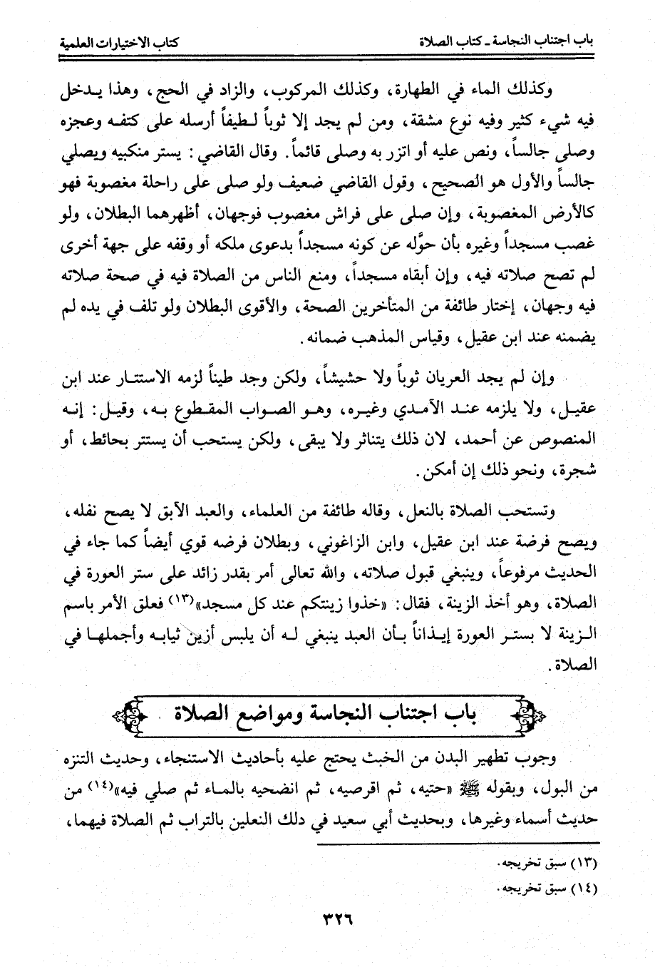 [بَابُ اجْتِنَابِ النَّجَاسَةِ وَمَوَاضِعِ الصَّلَاةِ]