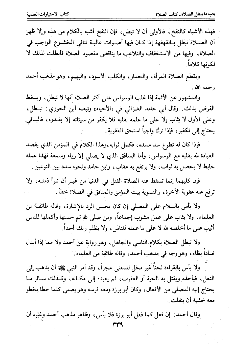 وَلَا تَبْطُلُ الصَّلَاةُ بِكَلَامِ النَّاسِي وَالْجَاهِلِ، وَهُوَ رِوَايَةٌ عَنْ أَحْمَدَ وَلَا مِمَّا إذَا أَبْدَلَ ضَادًا بِظَاءٍ، وَهُوَ وَجْهٌ فِي مَذْهَبِ أَحْمَدَ، وَقَالَهُ طَائِفَةٌ مِنْ الْعُلَمَاءِ.