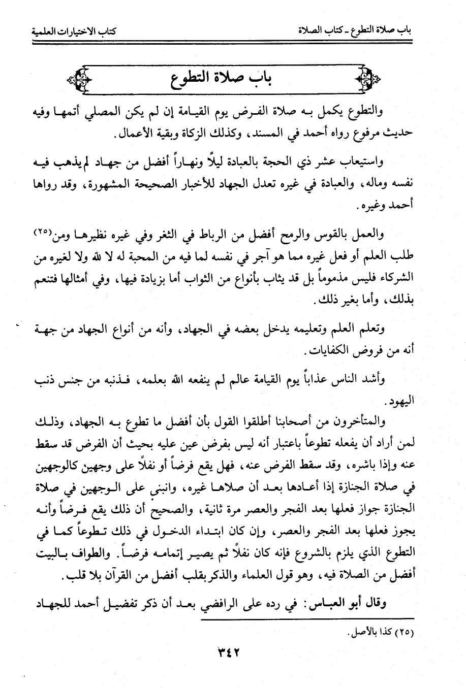 وَقَالَ أَبُو الْعَبَّاسِ: فِي رَدِّهِ عَلَى الرَّافِضِيِّ بَعْدَ أَنْ ذَكَرَ تَفْضِيلَ أَحْمَدَ لِلْجِهَادِ